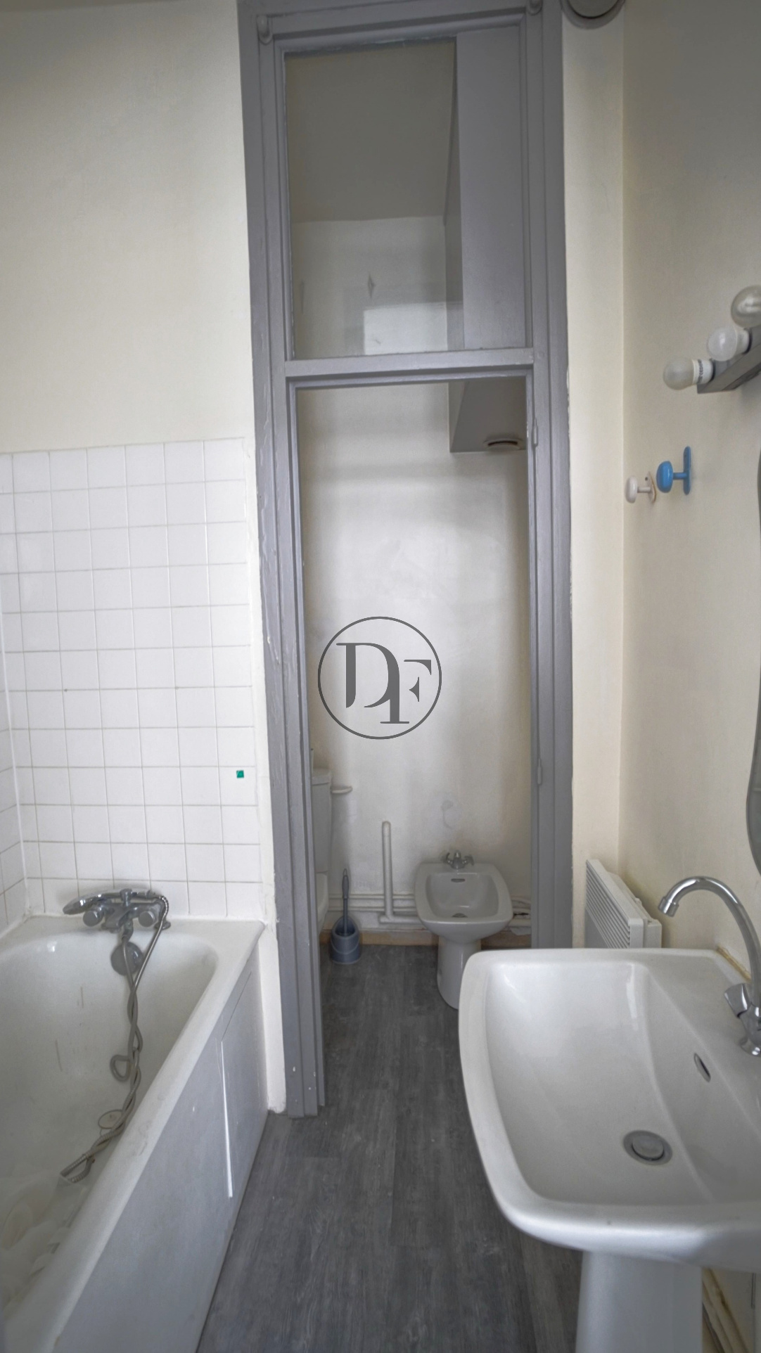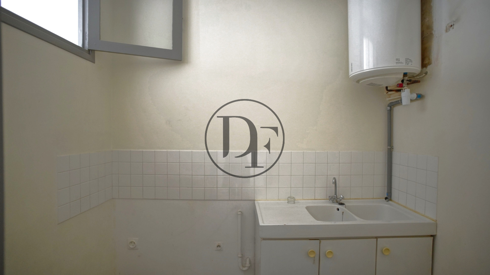 L'appartement se compose d'une entrée desservant un salon séjour avec cheminée d'époque et placards, une cuisine indépendante, une salle d'eau et des toilettes indépendants.