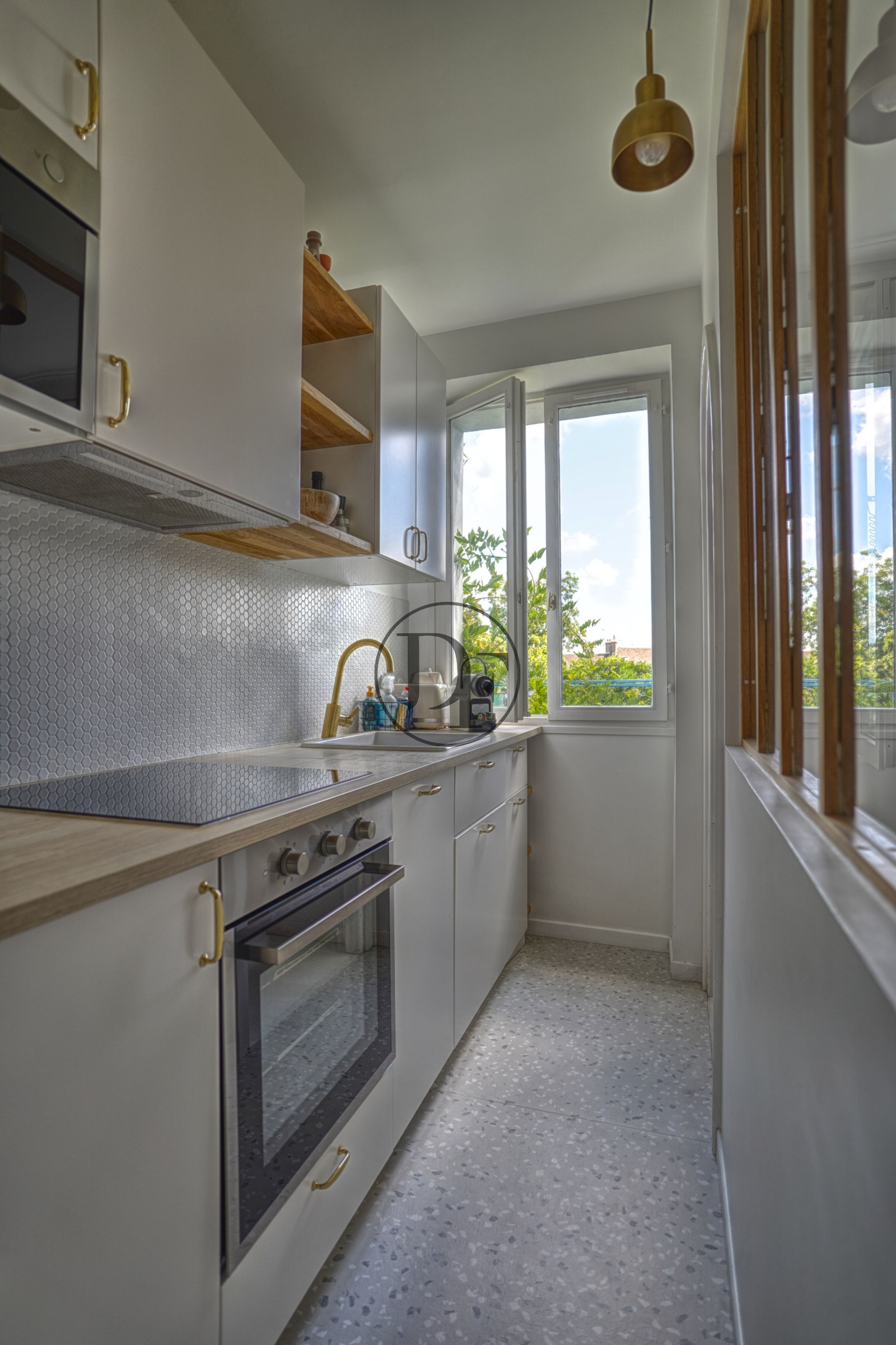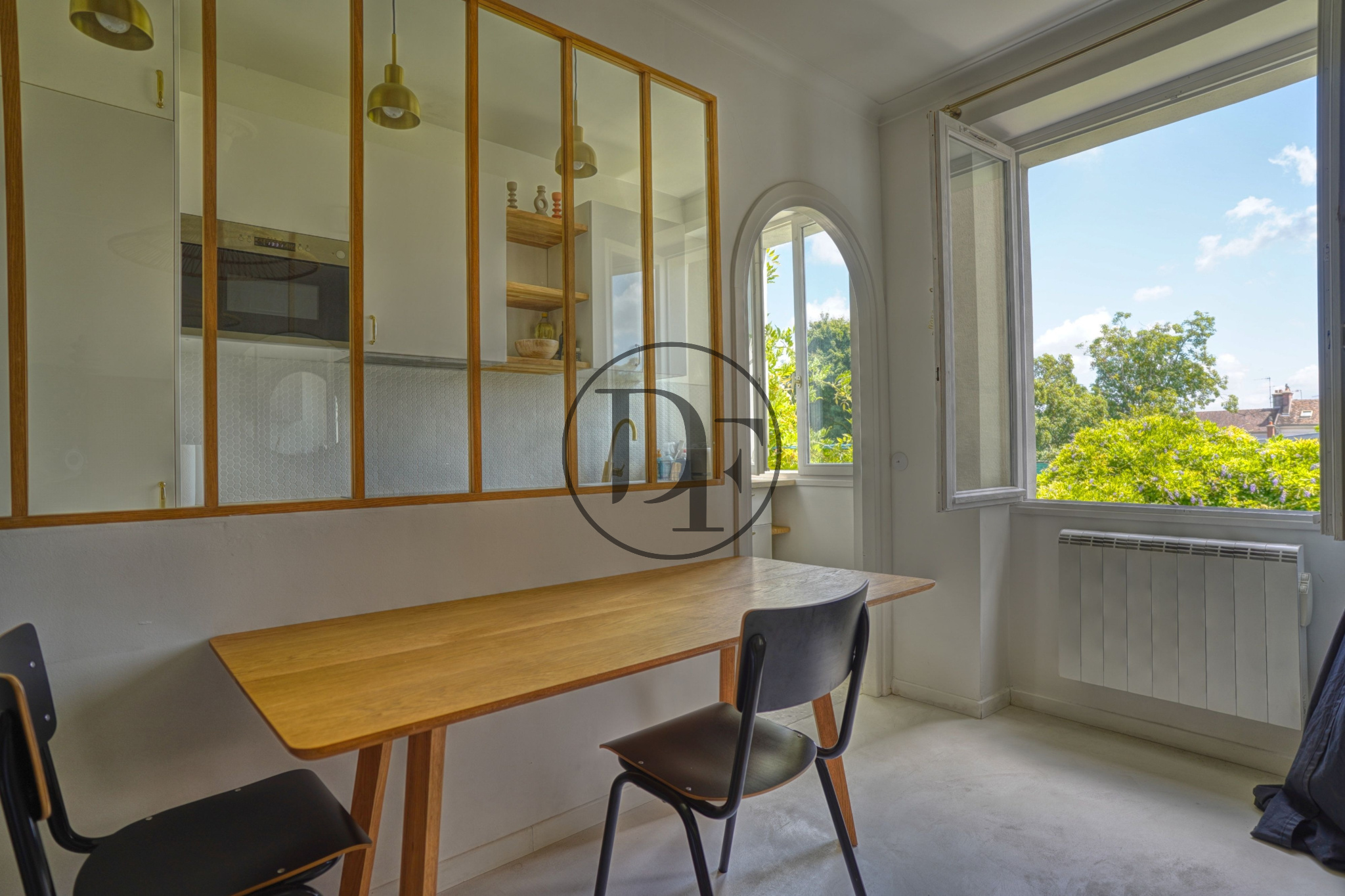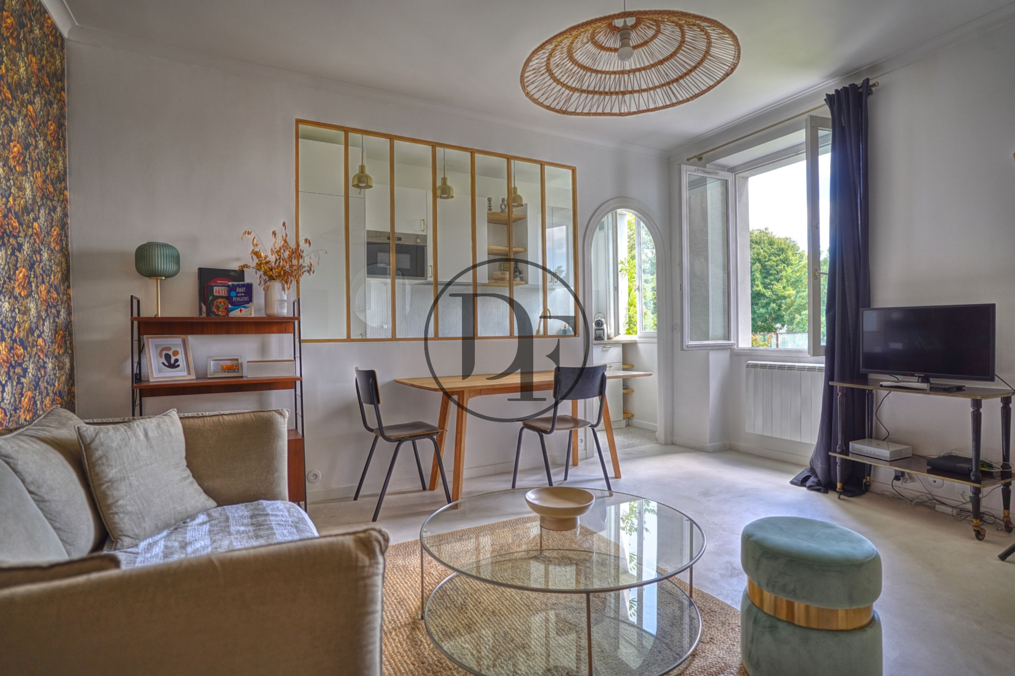 L'appartement se compose d'un salon séjour, une cuisine aménagé et indépendante avec verrière, deux chambres et une salle d'eau avec toilette.