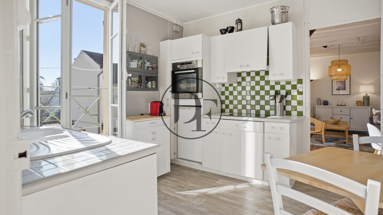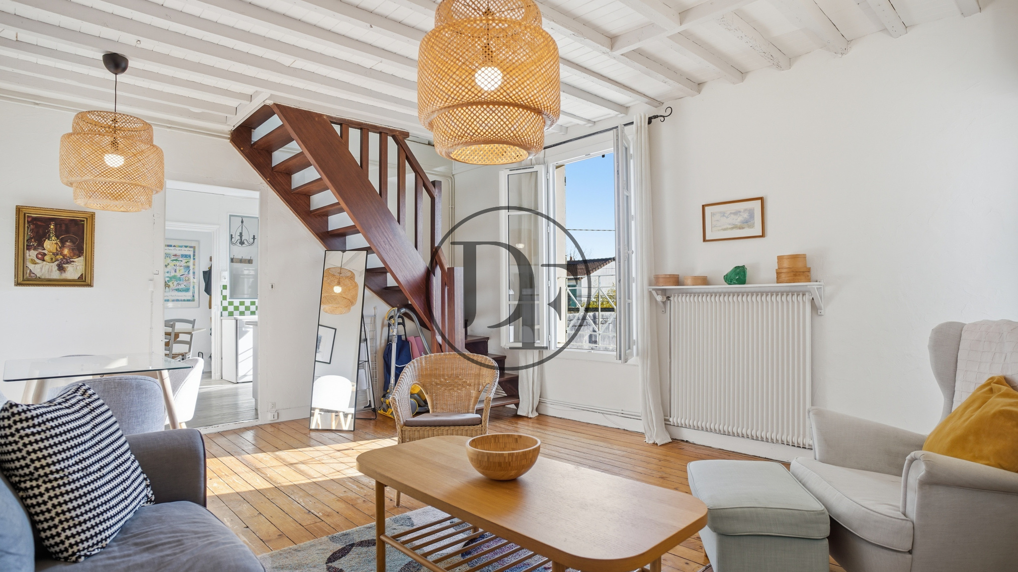 L'appartement se compose d'une entrée indépendante desservant un toilette, une cuisine équipée et aménagée avec espace repas, une salle d’eau intégrant un coin buanderie. En continuité, un salon-séjour lumineux et chaleureux ainsi qu’une chambre avec placard. Au 1er étage, un palier dessert deux chambres ou espace bureau avec de nombreux rangements.