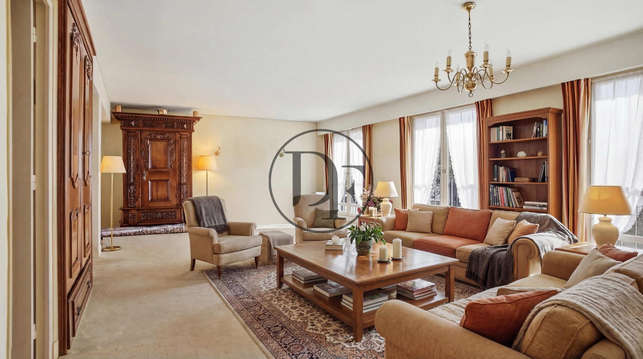 BEL APPARTEMENT TRAVERSANT, PROPRE ET LUMINEUX, SITUE AU 1er ETAGE OFFRANT 128M² DE SURFACE HABITABLE ET DISPOSANT DEUX GARAGES EN SOUS-SOL ET DEUX CAVES.