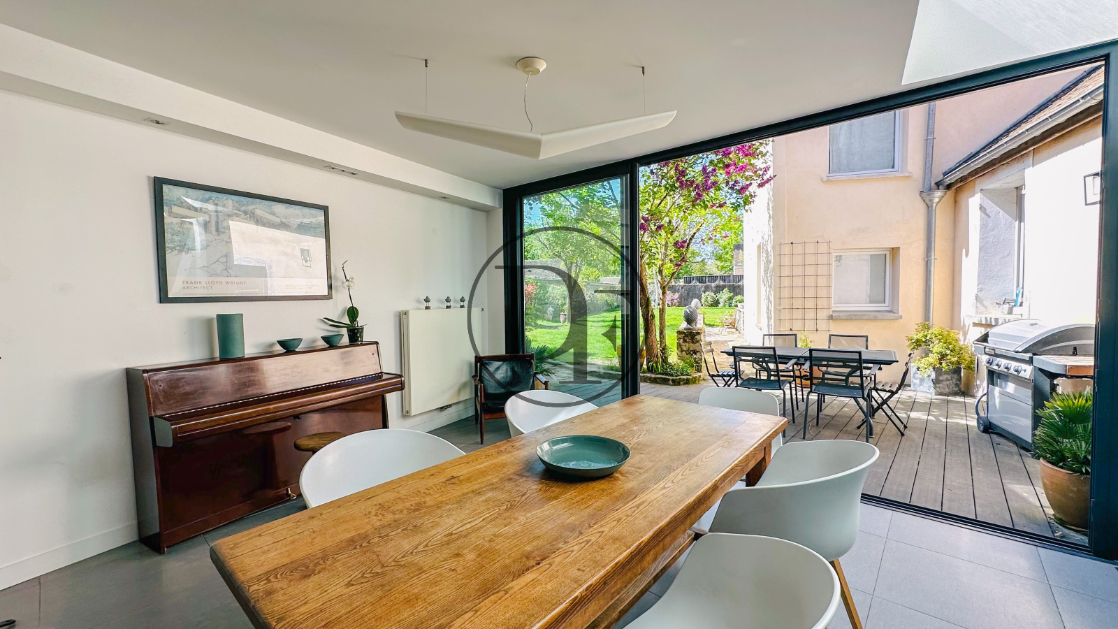 AGREABLE MAISON FAMILIALE ET LUMINEUSE OFFRANT 220M² DE SURFACE HABITABLE AVEC DEPENDANCE AMENAGEE ET UN APPARTEMENT EN DUPLEX DE 60M² INDEPENDANT, UNE CAVE VOUTEE ET UN GARAGE, LE TOUT ERIGE SUR UN BEAU TERRAIN SANS VIS-A-VIS ARBORE ET PISCINABLE DE 653M².
