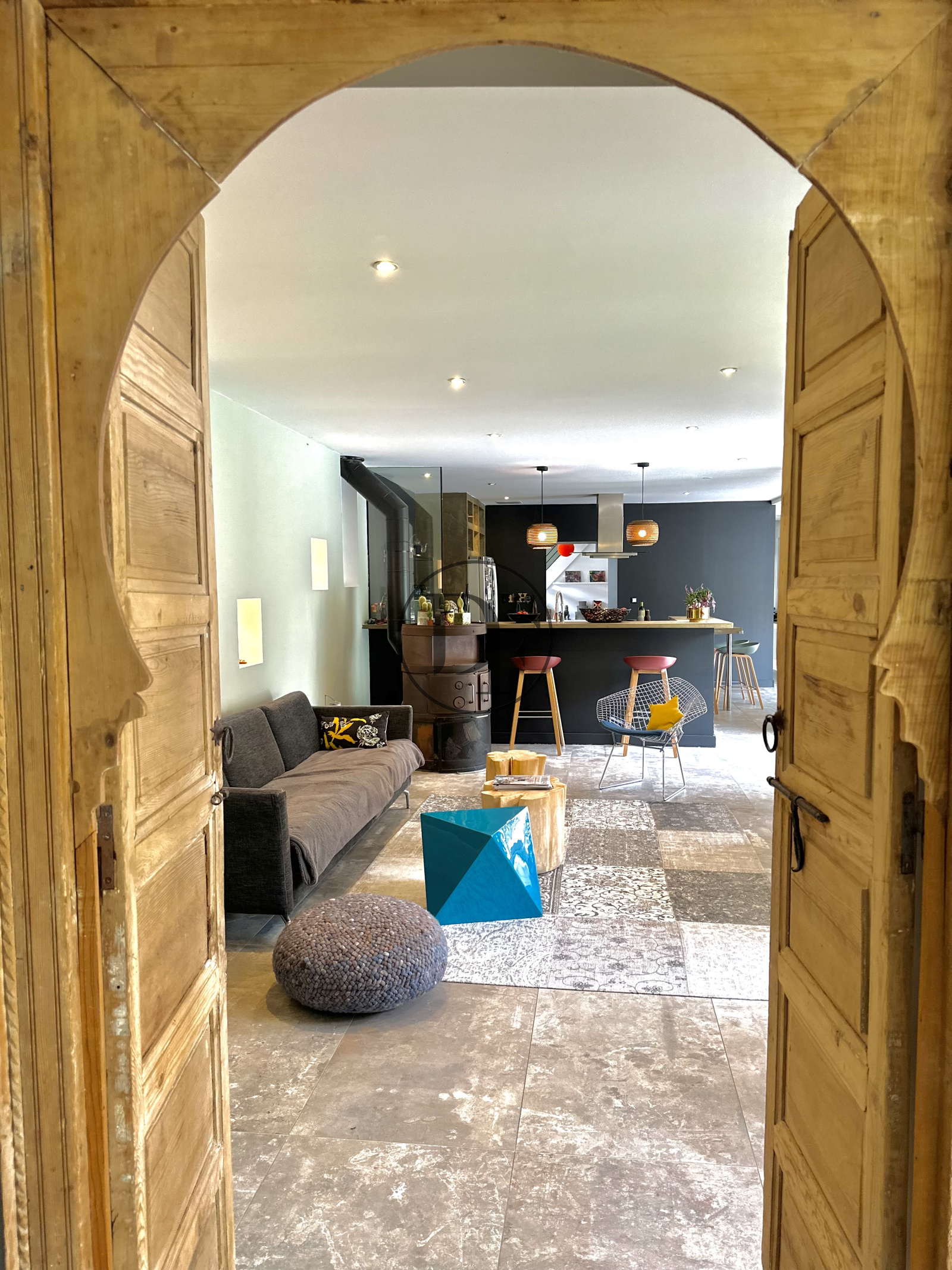 Dès votre arrivée vous serez charmé par une belle entrée sous porche avec vestiaire qui mène à une spacieuse pièce à vivre de 90 m² comprenant une cuisine équipée et aménagée ouverte avec un îlot central, une salle à manger et deux salons avec poêle à bois. De grandes baies vitrées permettent d'accéder à une belle terrasse en bois et à un jardin intimiste avec une piscine.