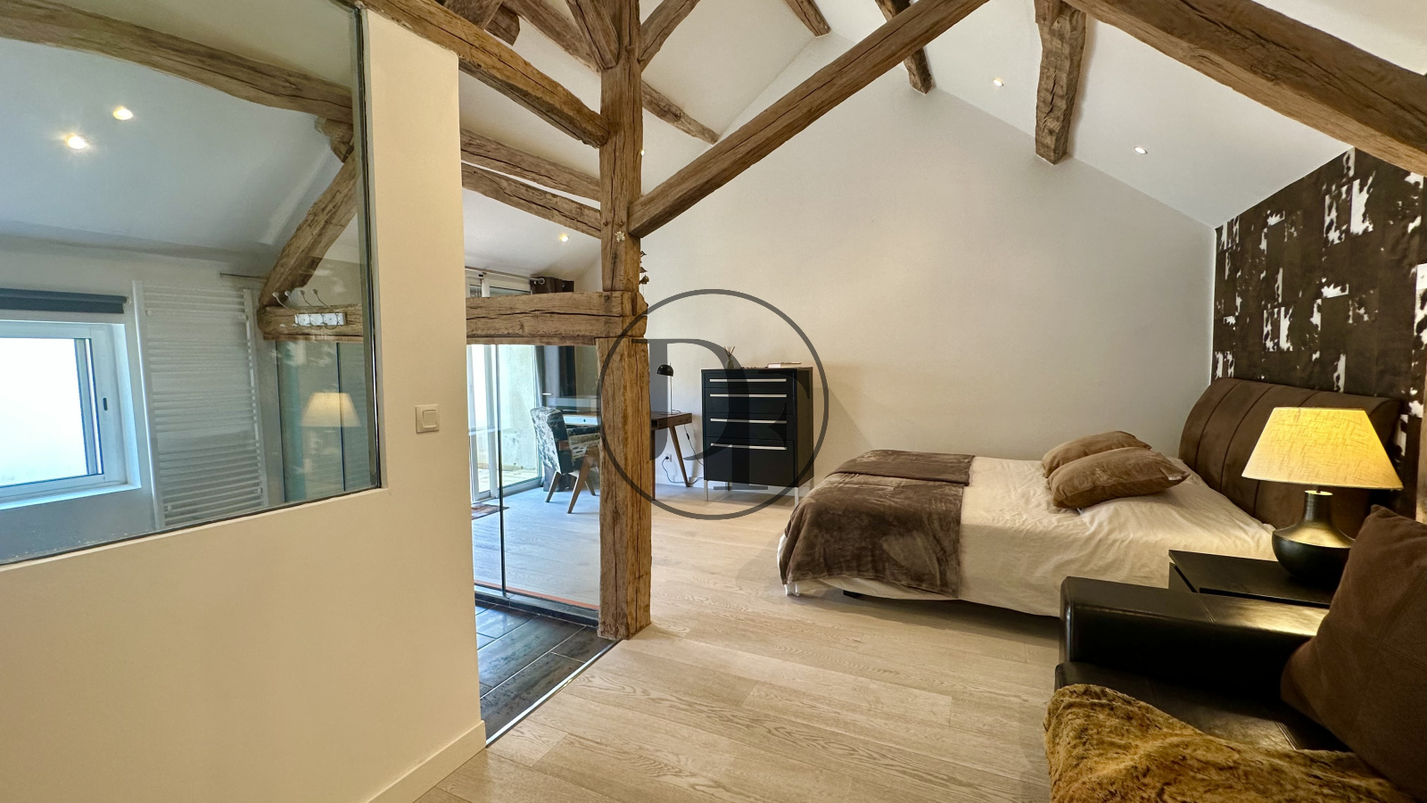 Cette propriété offre également une dépendance aménagée comprenant une chambre avec douche italienne, toilettes indépendantes et une pièce offrant l’aménagement possible d’un coin cuisine.
