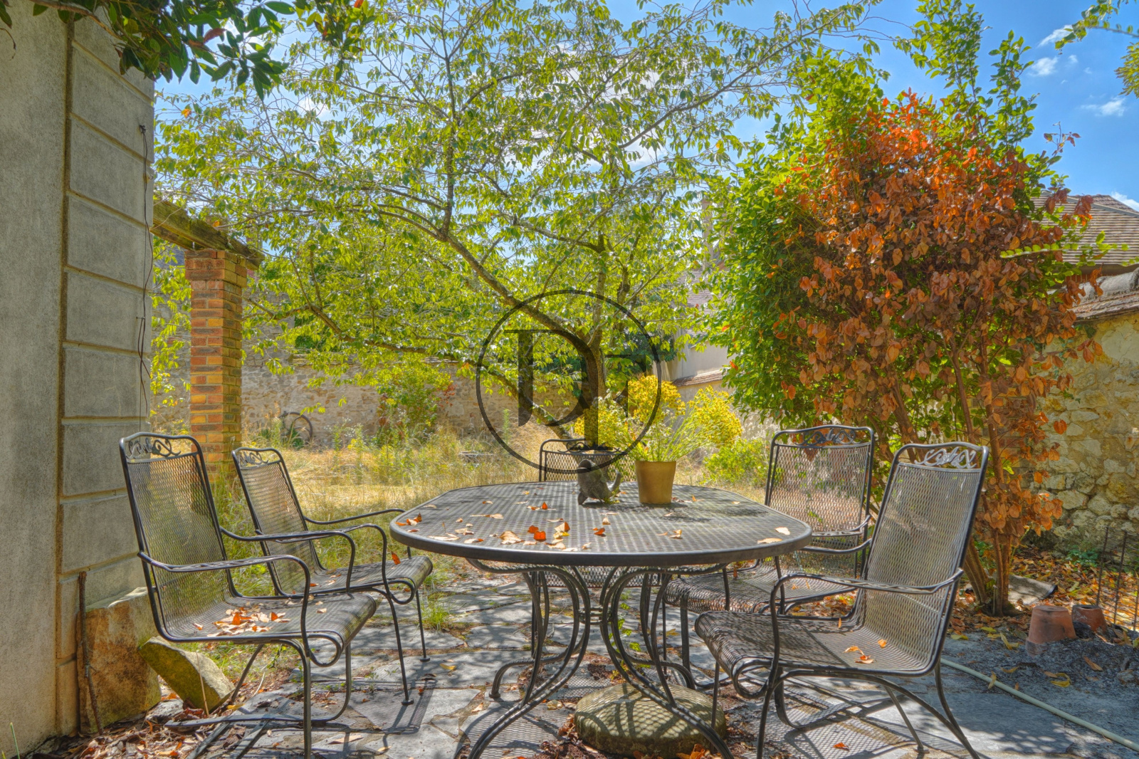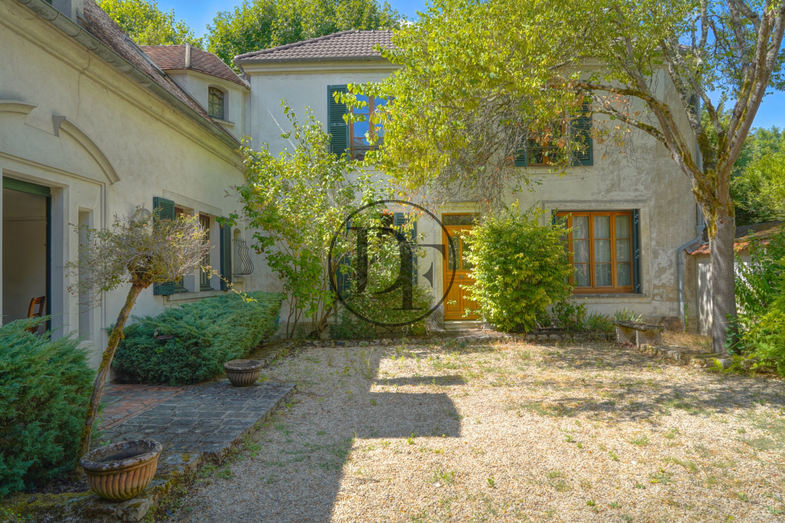 La propriété s’articule autour d’une agréable cour accueillante à l’avant et d’un jardin clos de murs à l’arrière, véritable havre de paix pour toute une famille.