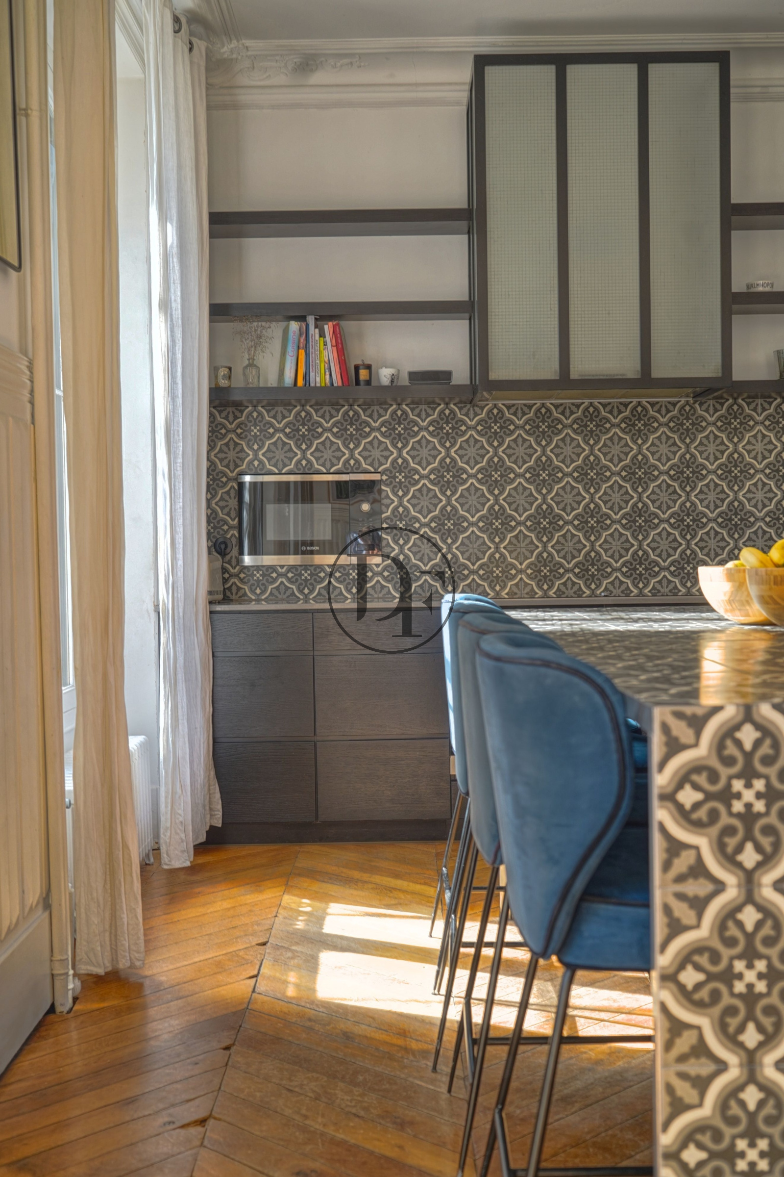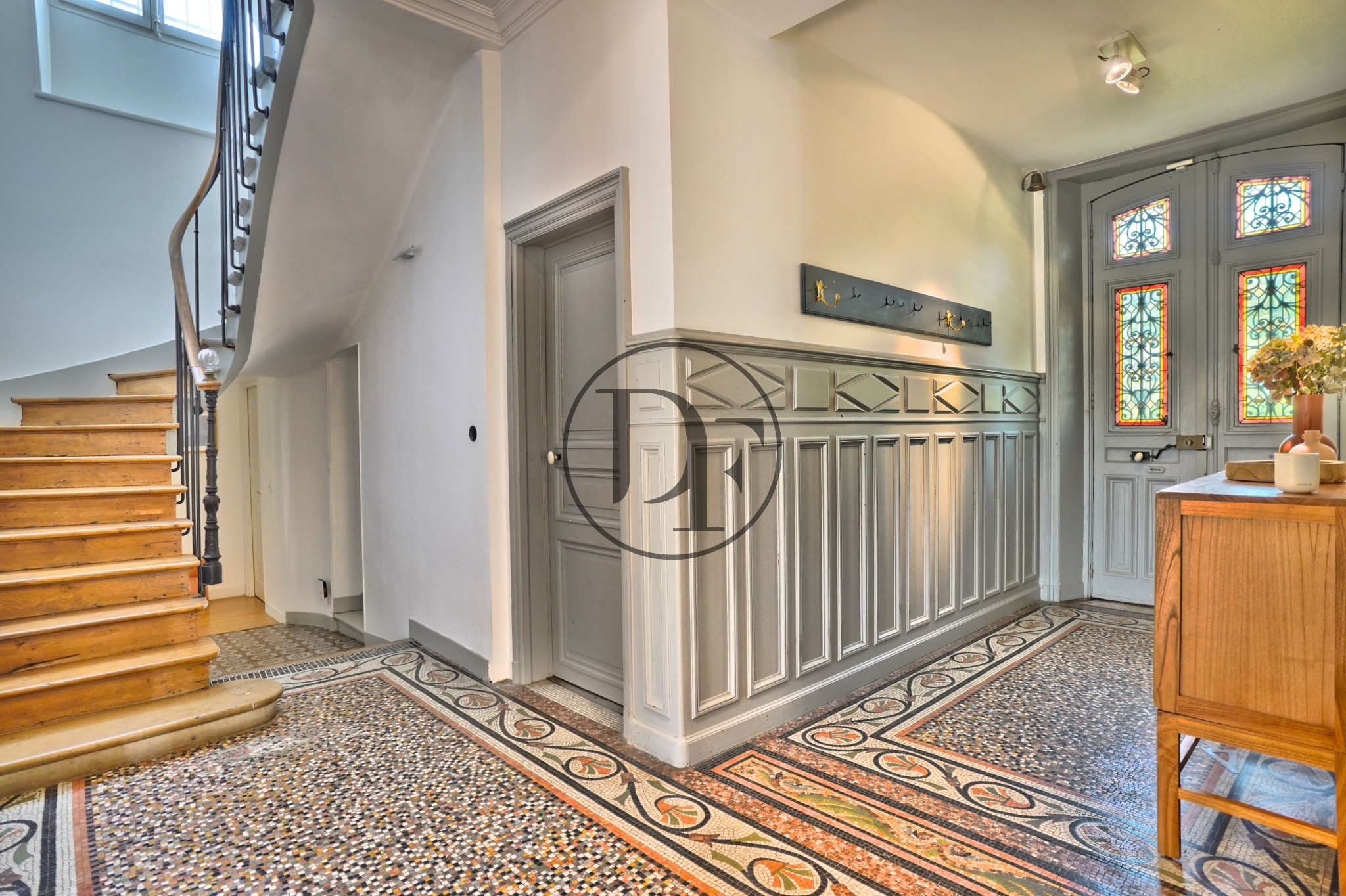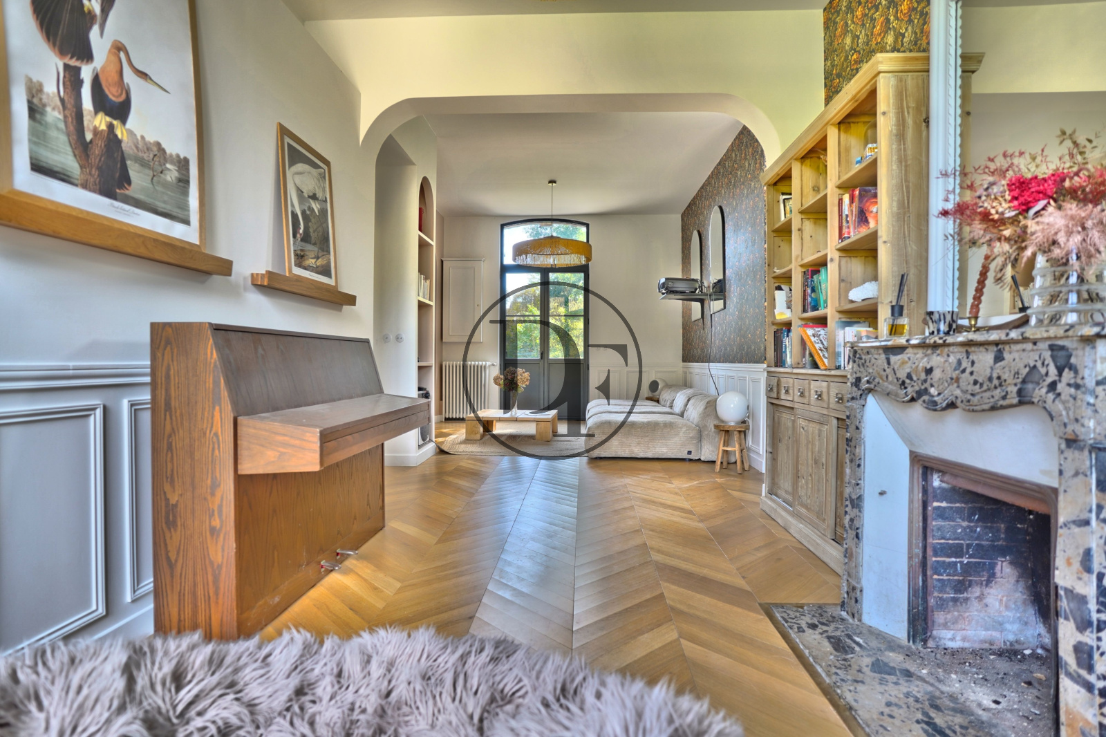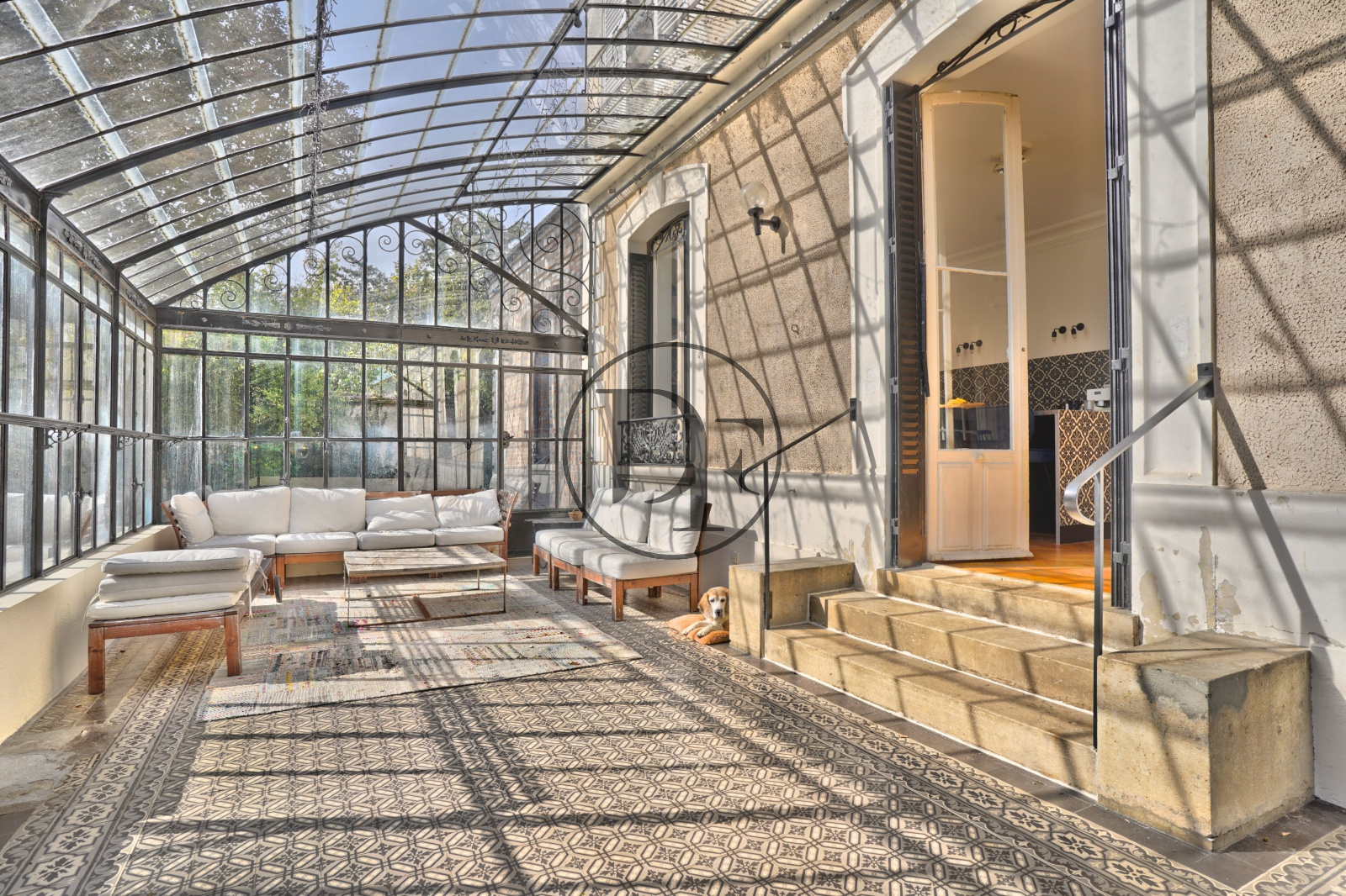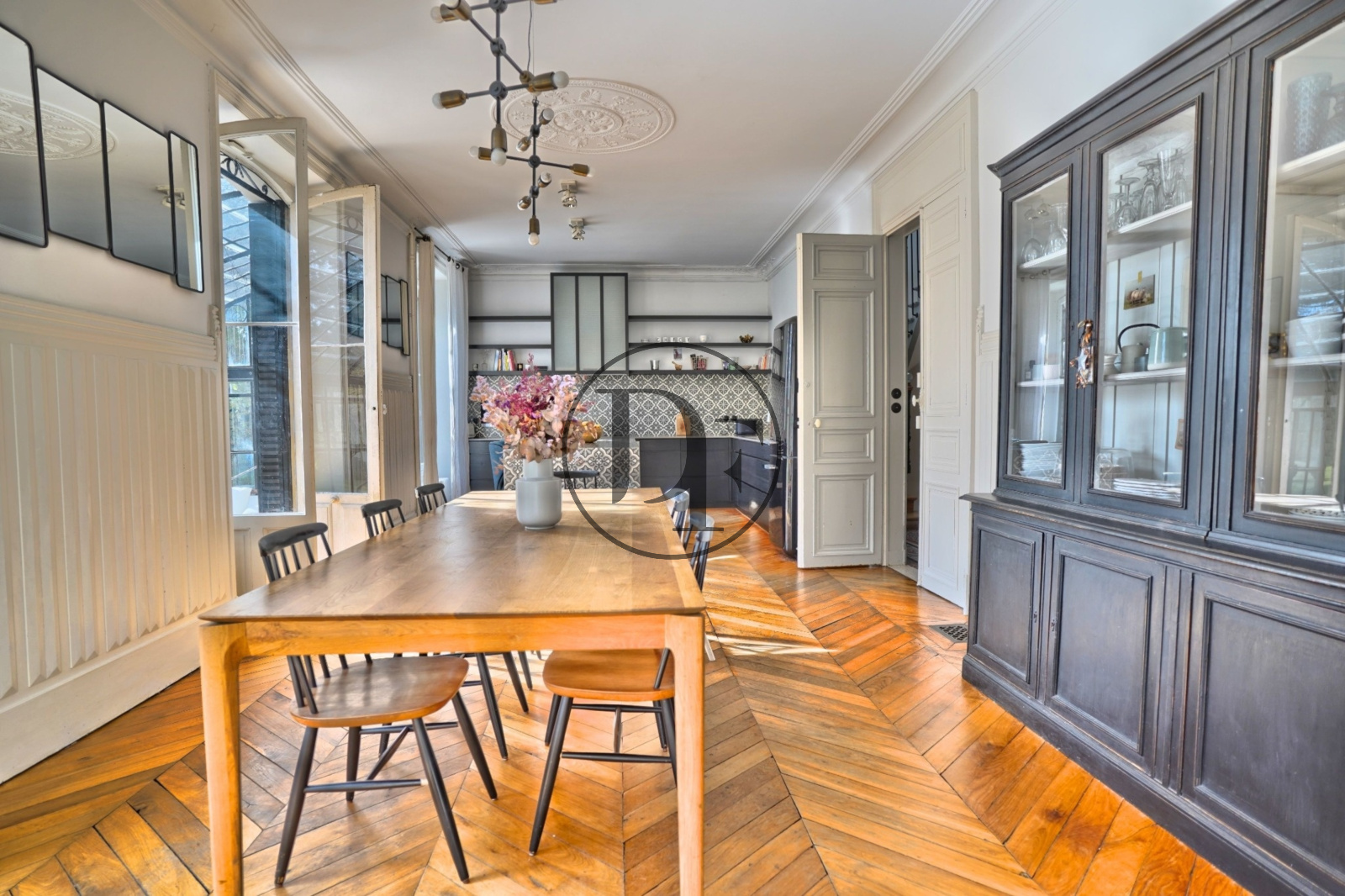 Dès votre arrivée sur le perron, vous serez accueilli par un beau hall d'entrée en mosaïque d'époque aménagé d'un vestiaire et d'un toilettes d'invités. En continuité, une magnifique pièce de vie en parquet de chêne, dotée d'une cheminée d’époque, d'une belle hauteur sous plafond et de grandes fenêtres pour une belle luminosité. Cette dernière, est suivi d’une élégante cuisine aménagée et équipée, agrémentée d’un espace repas convivial, le tout baigné de lumière par une magnifique verrière XIXe siècle orientée plein Sud.