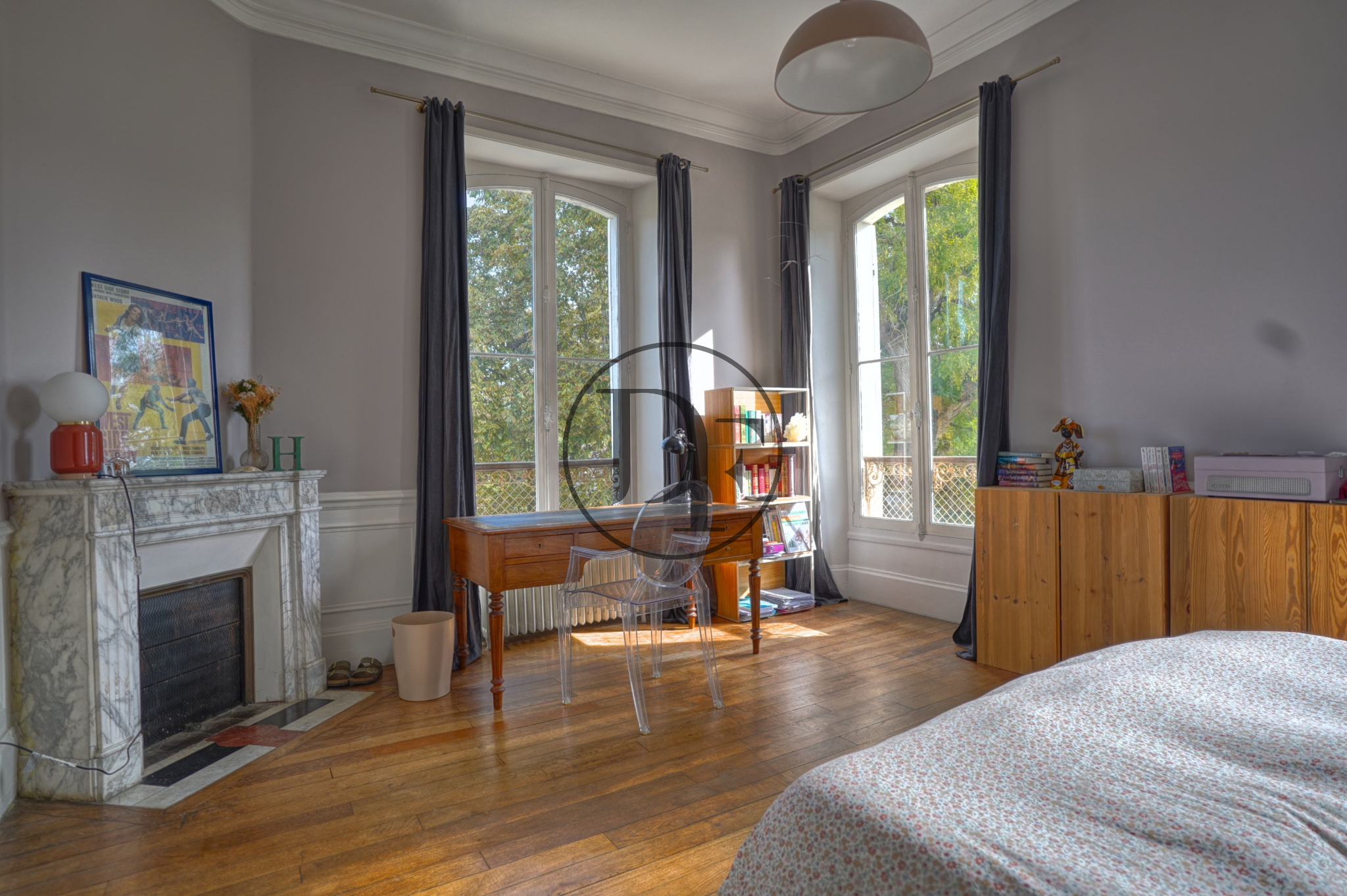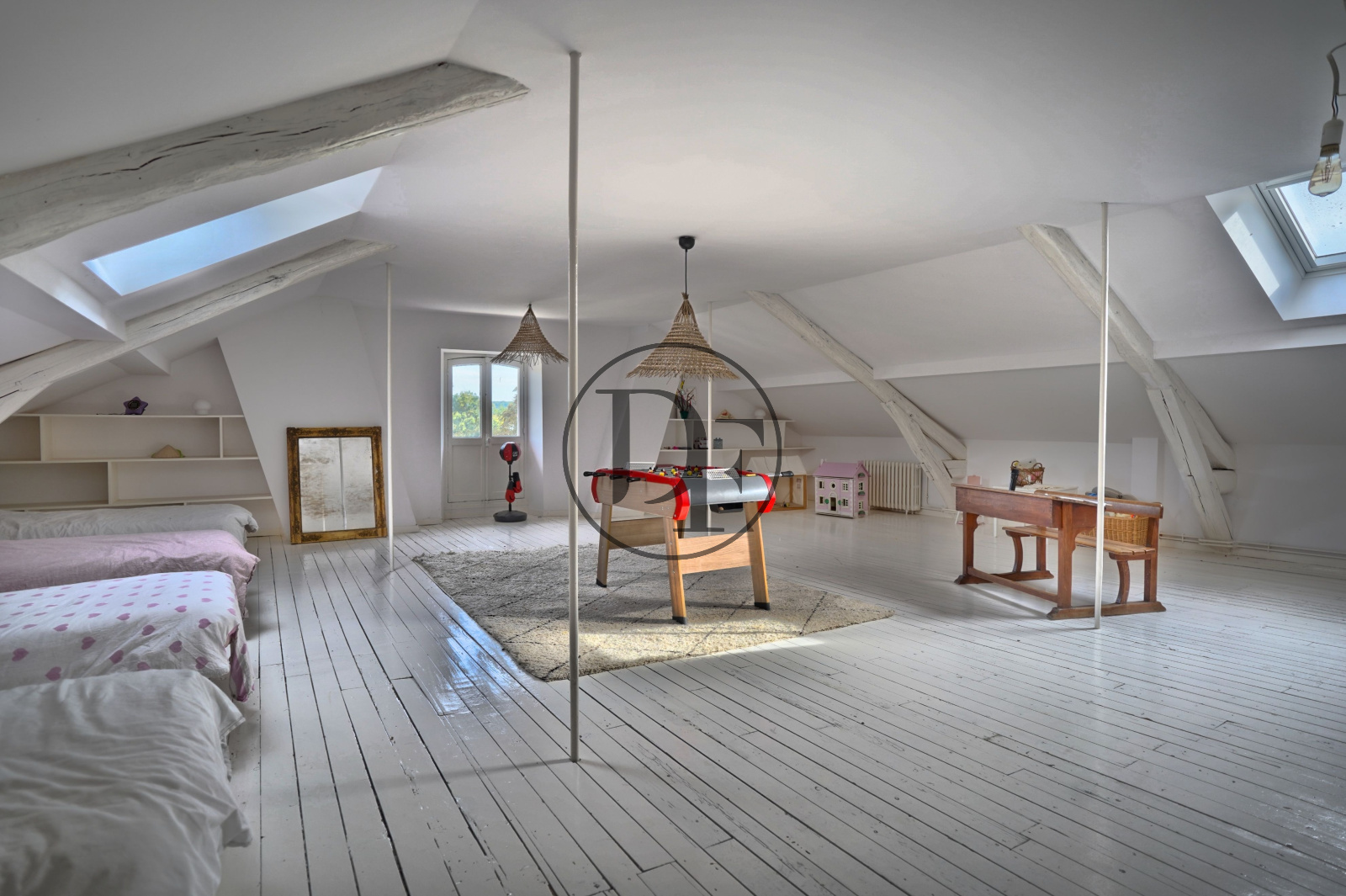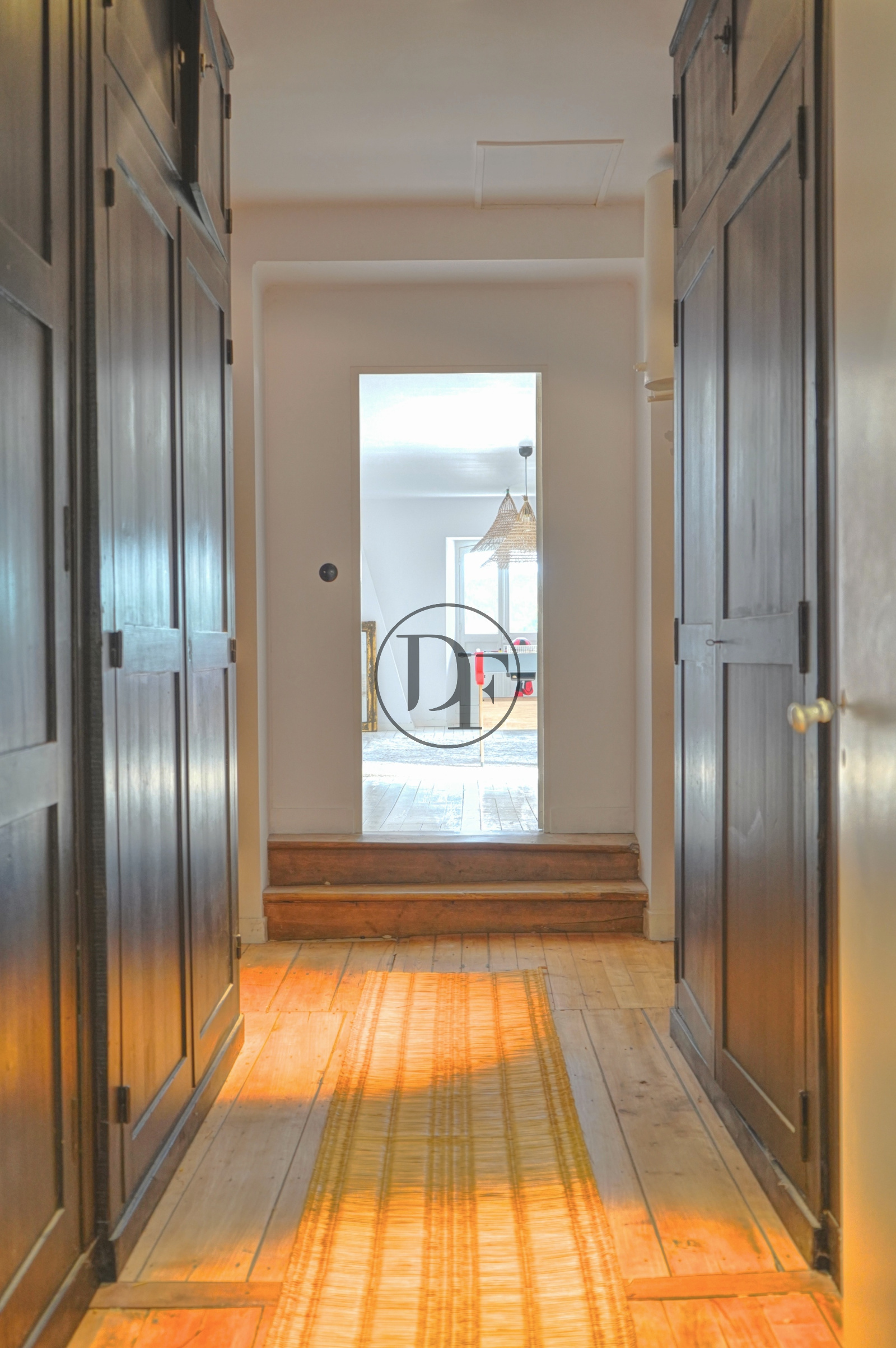 Au dernier étage, un vaste palier avec placards intégrés dessert deux chambres en parquet avec chacune un grand espace dressing, un toilette indépendant avec espace de rangement, une bibliothèque et un grand dortoir de 75m² au sol.