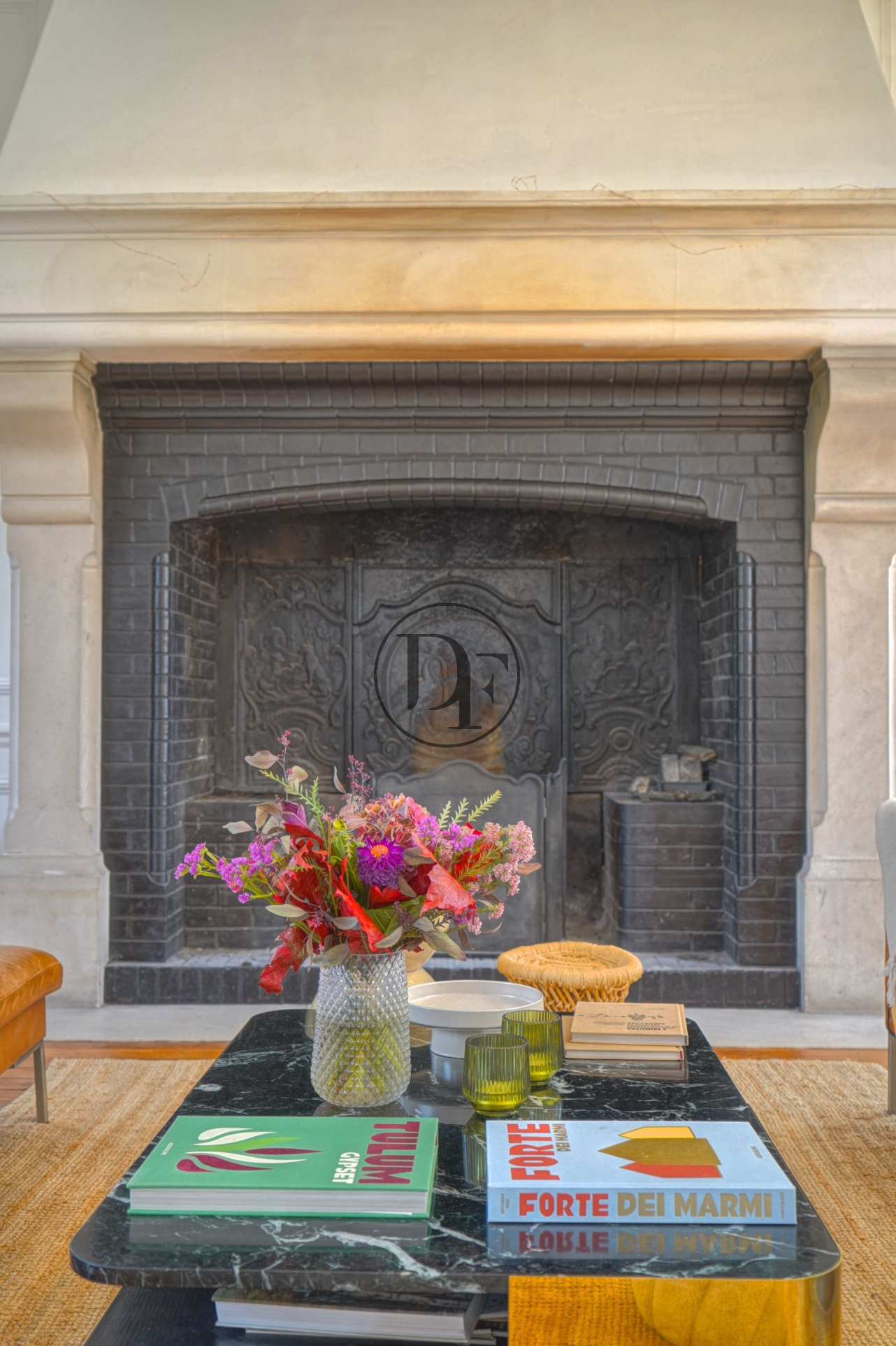 LES ELEMENTS DE DECORATION FIN XIX EME ONT ETE CONSERVES : CARREAUX DE CIMENT, PARQUETS, MOULURES, MIROIR, CARRELAGES, CHEMINEES ET ESCALIER SONT D'EPOQUE.