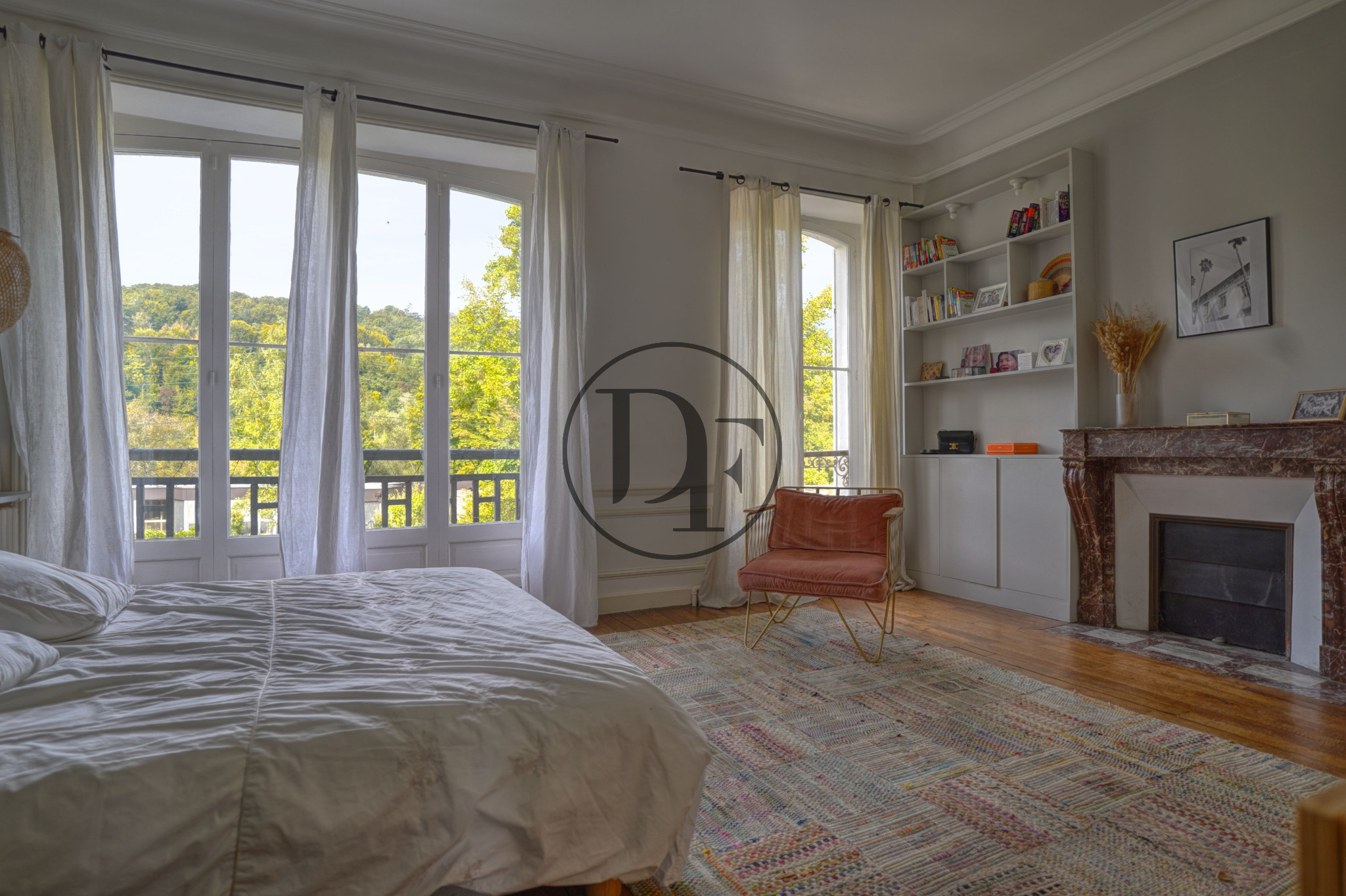 Au premier étage, un vaste palier dessert cinq belles chambres, dotées de parquets nobles et de cheminées anciennes. Une suite parentale avec salle d’eau, deux salles de bains dont une avec douche, un dressing indépendant ainsi qu’un toilette séparé viennent compléter ce niveau avec harmonie.