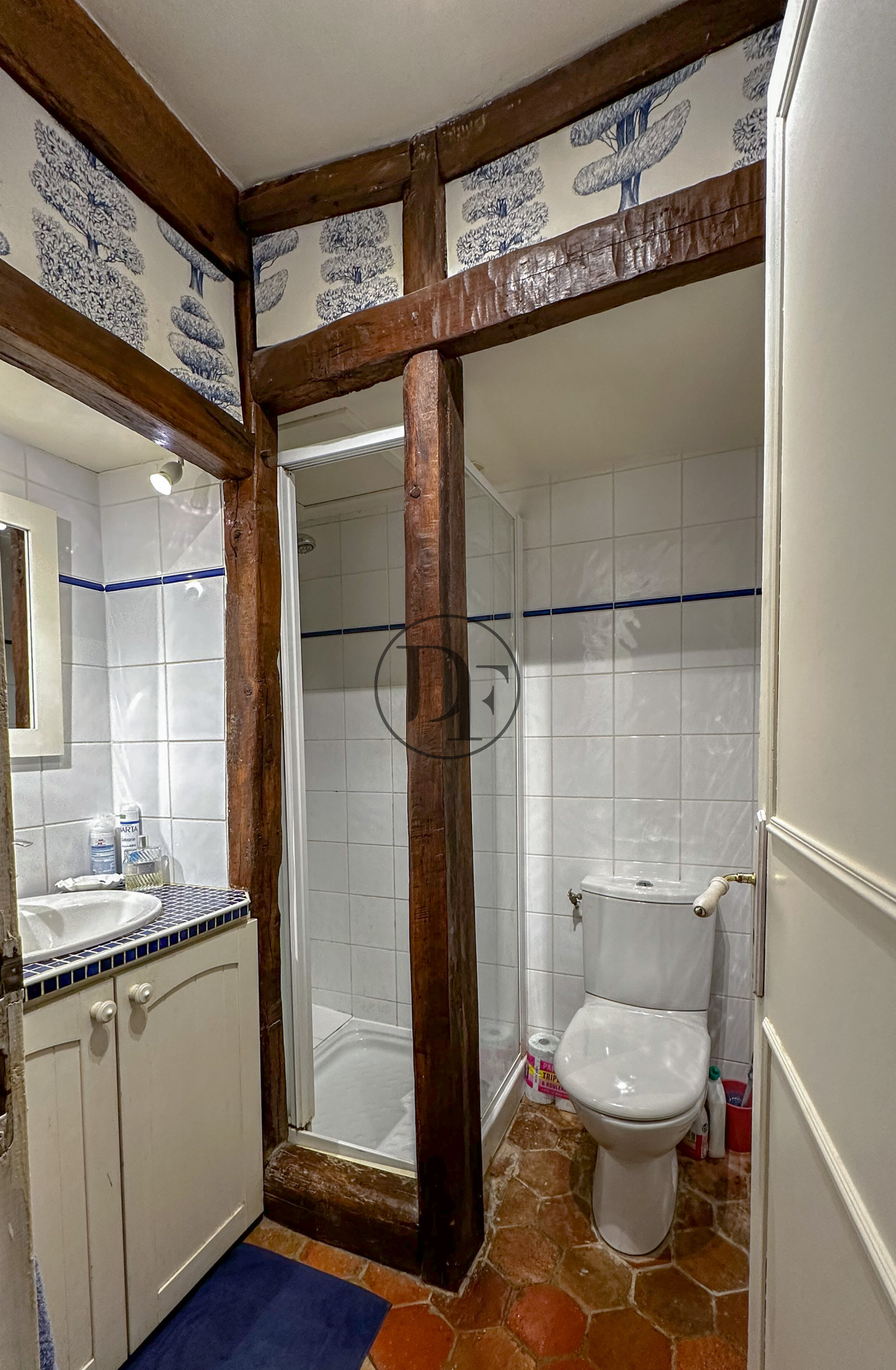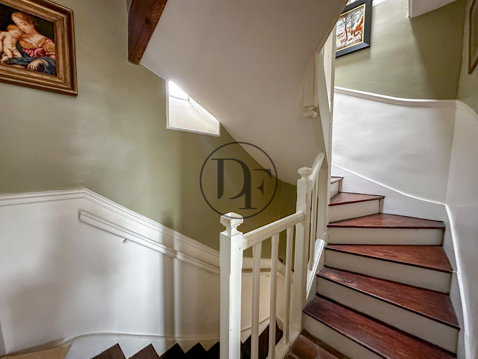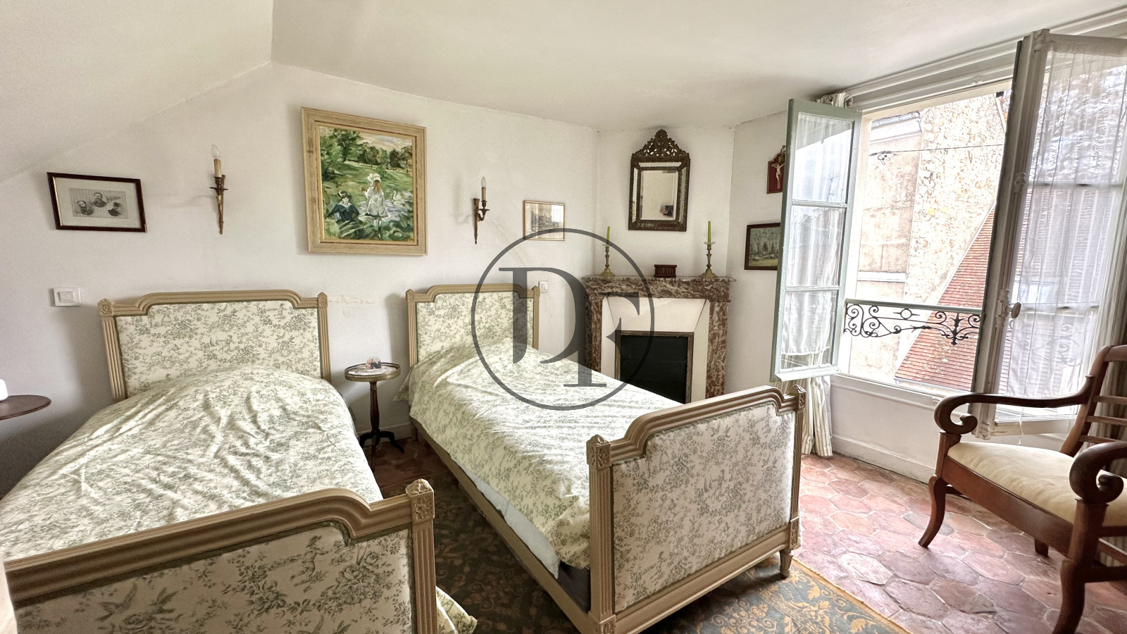 Au 2ème étage un palier dessert un toilette avec lave-mains, une salle de bains avec baignoire « pied de lion », deux chambres dont une avec point d’eau.