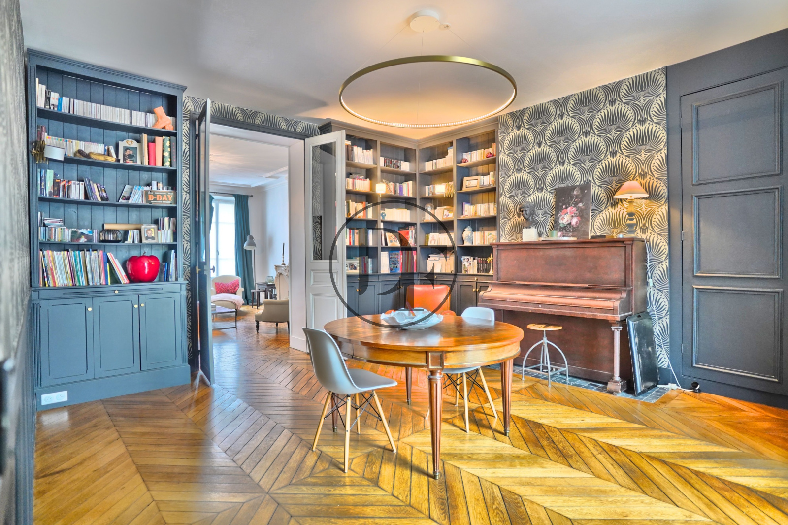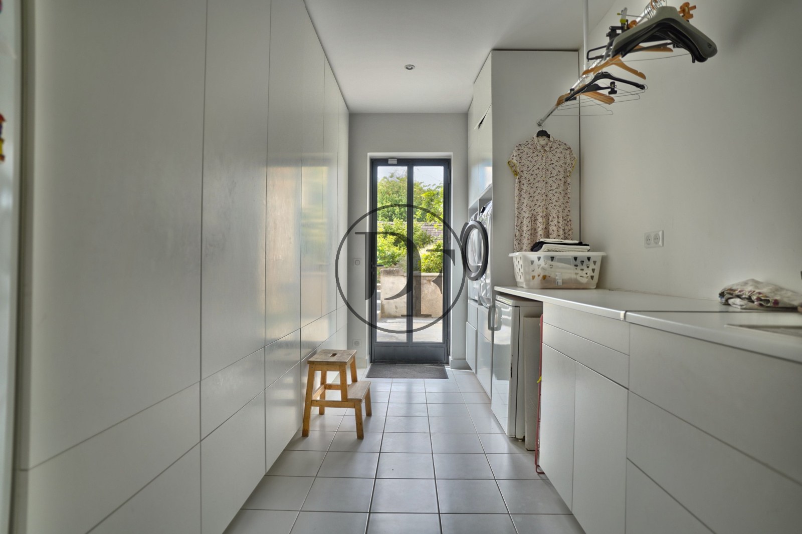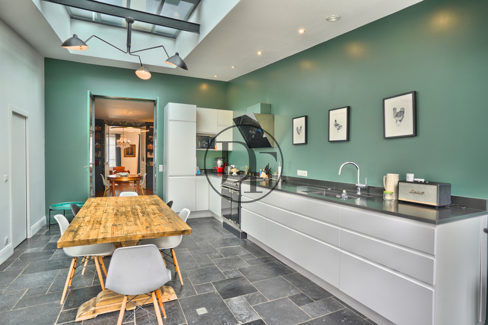 La maison se compose, au rez-de-chaussée, d’un hall d’entrée accueillant avec vestiaire et toilettes pour invités, d’un vaste salon parqueté en point de Hongrie, doté d’une cheminée d’époque et bénéficiant d’une belle hauteur sous plafond. Ce dernier est suivi d’une élégante salle à manger conduisant à une magnifique cuisine aménagée sur mesure donnant accès à une vaste terrasse menant au jardin. Une arrière-cuisine, offrant de multiples rangements sur mesure et intégrant une buanderie fonctionnelle, vient parfaire ce niveau.