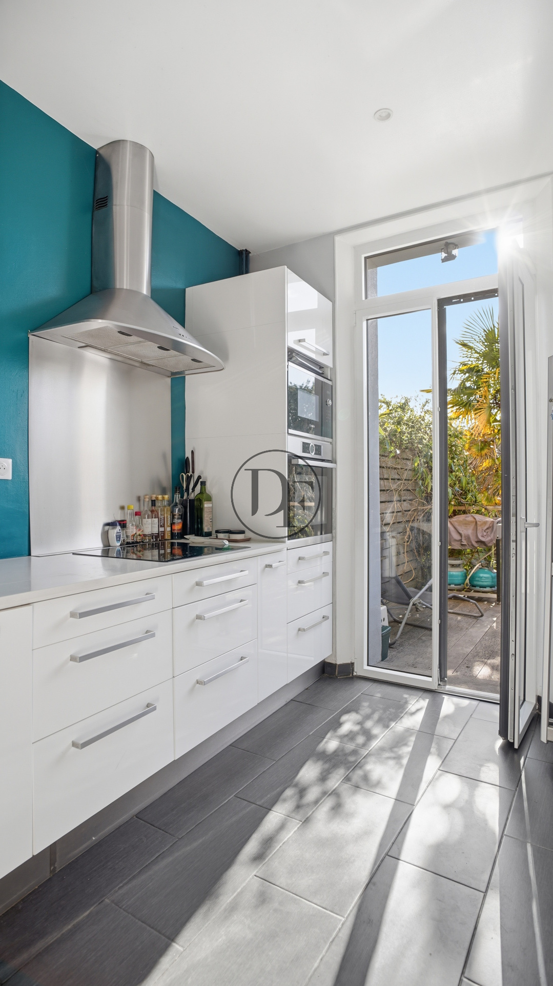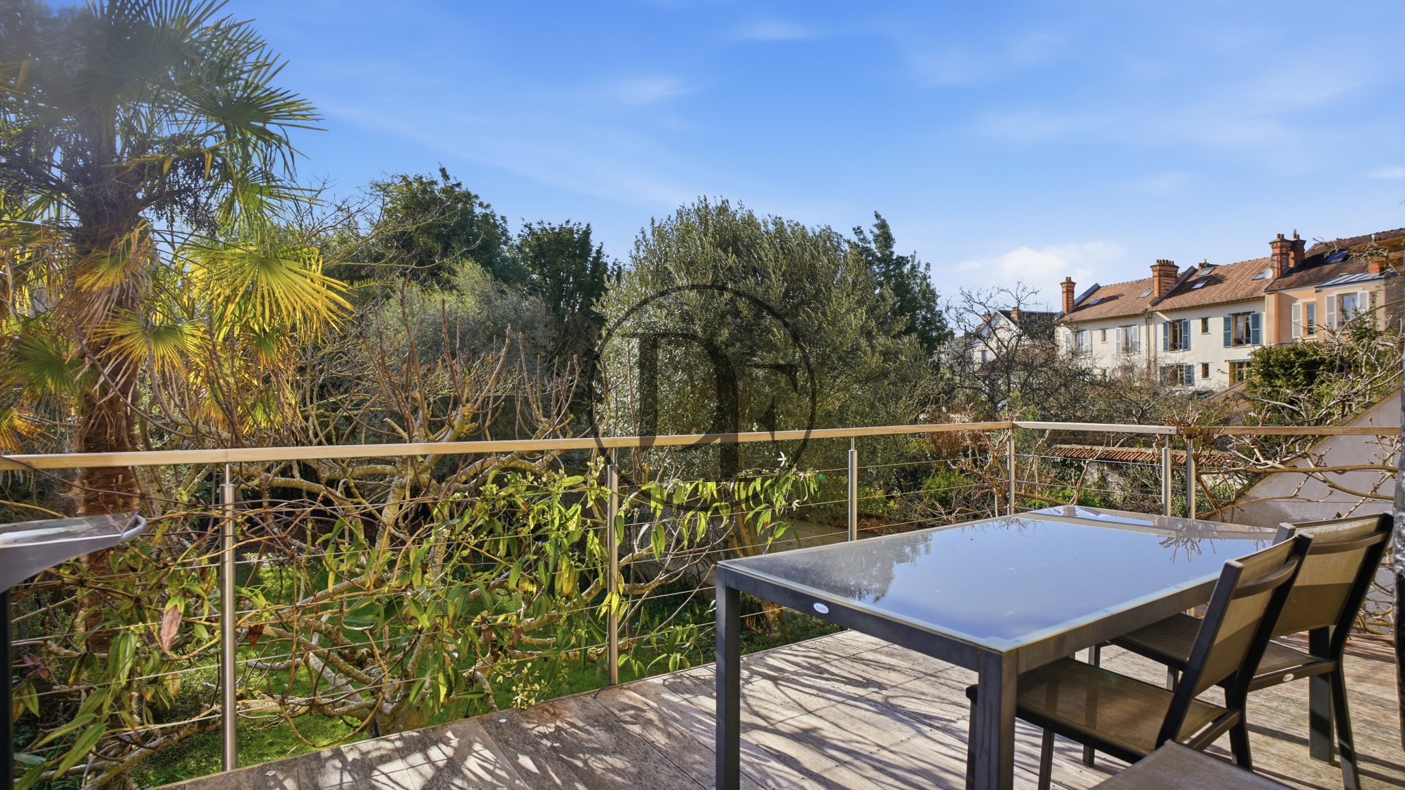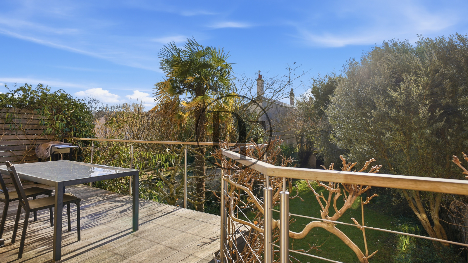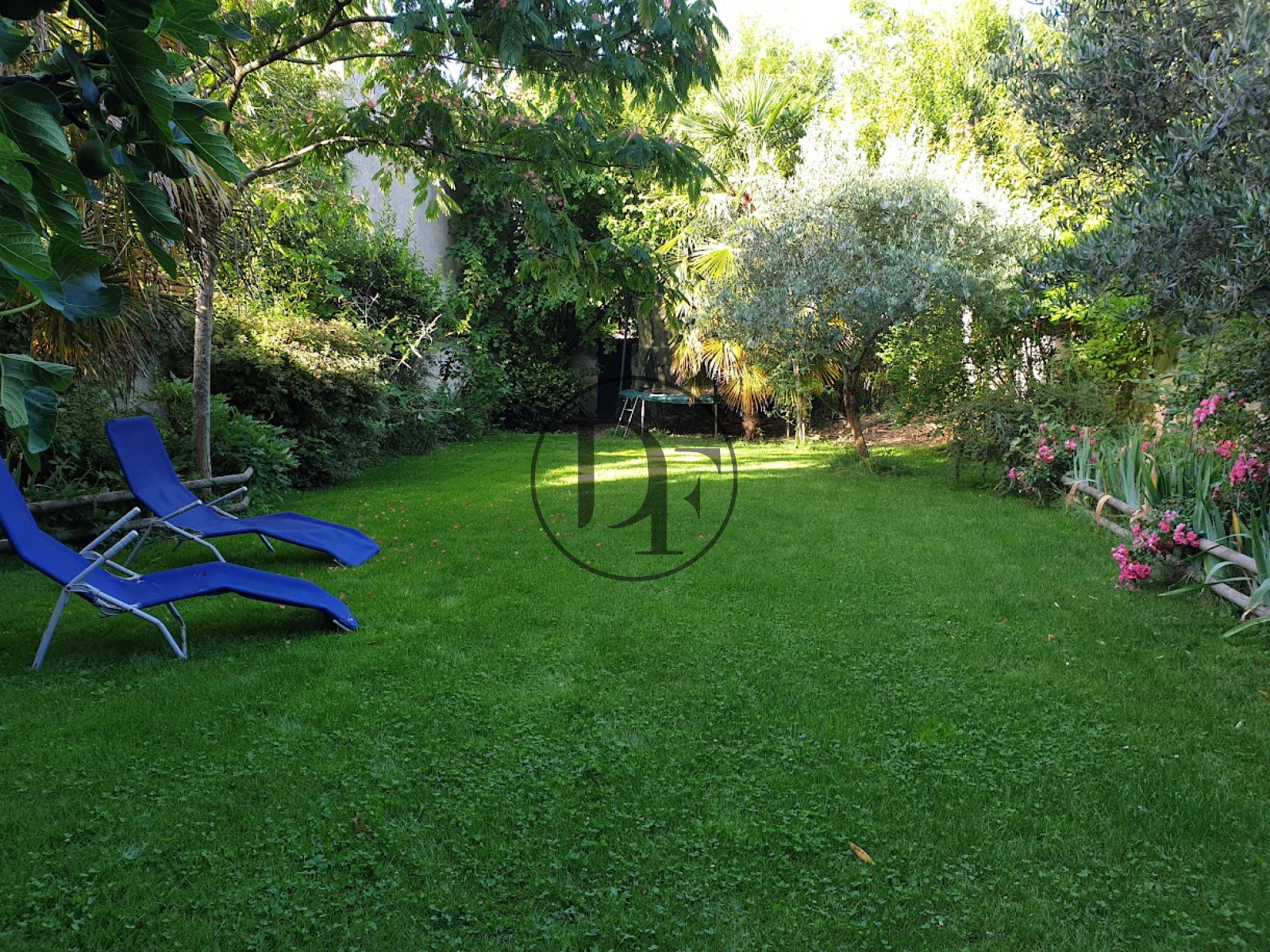 Le jardin intimiste bénéficie d’un éclairage extérieur et d’un arrosage automatique domotisé alimenté par un puits.