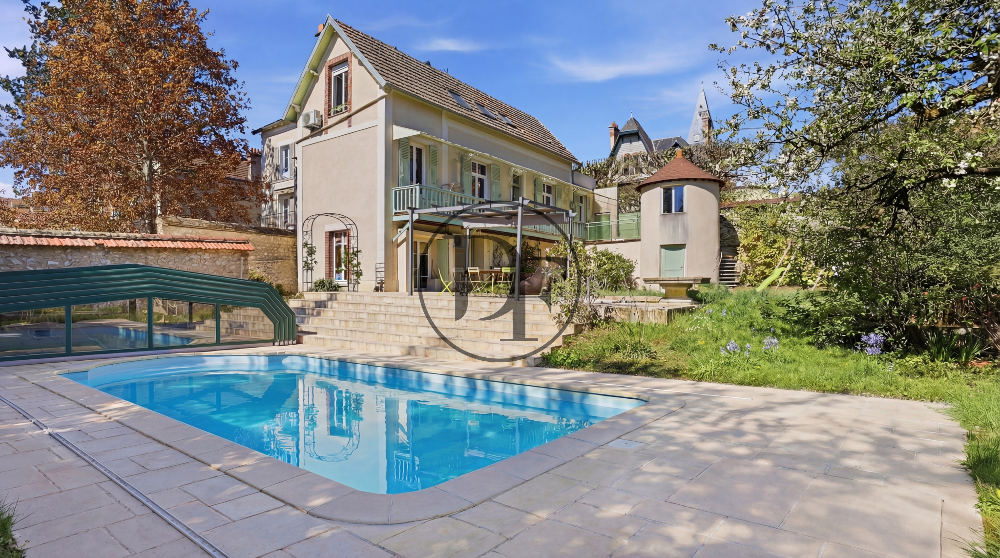 À l’extérieur, vous profiterez d’un magnifique jardin clos et arboré de 1 248 m², idéalement exposé plein sud, agrémenté d’une piscine chauffée et couverte, offrant un cadre de vie privilégié et sans vis-à-vis.