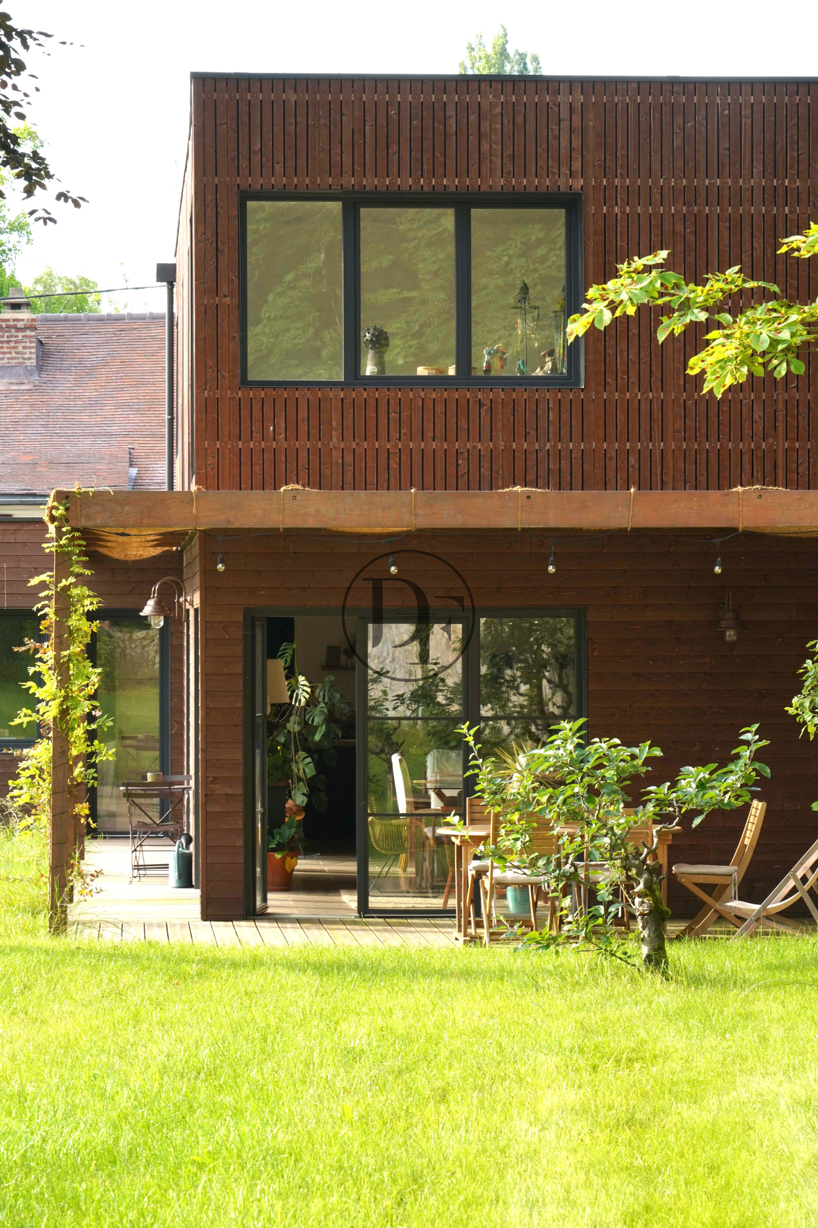 Le Jardin offre une vue degagée sur la nature omnipresente, la terrasse est en partie couverte et offre ainsi un espace de vis suplamentaire prolongeant le salon sur l'exterieur.6