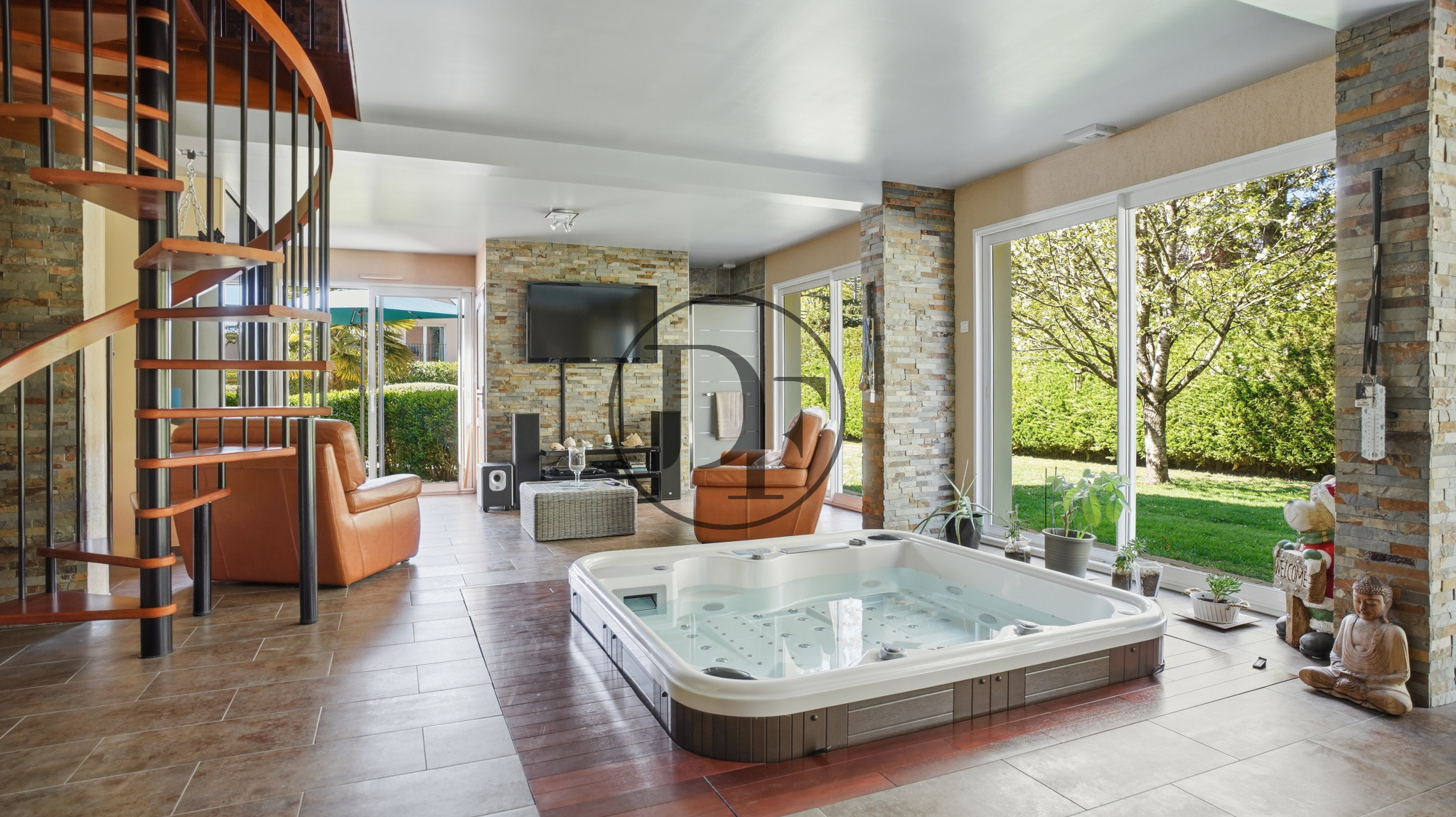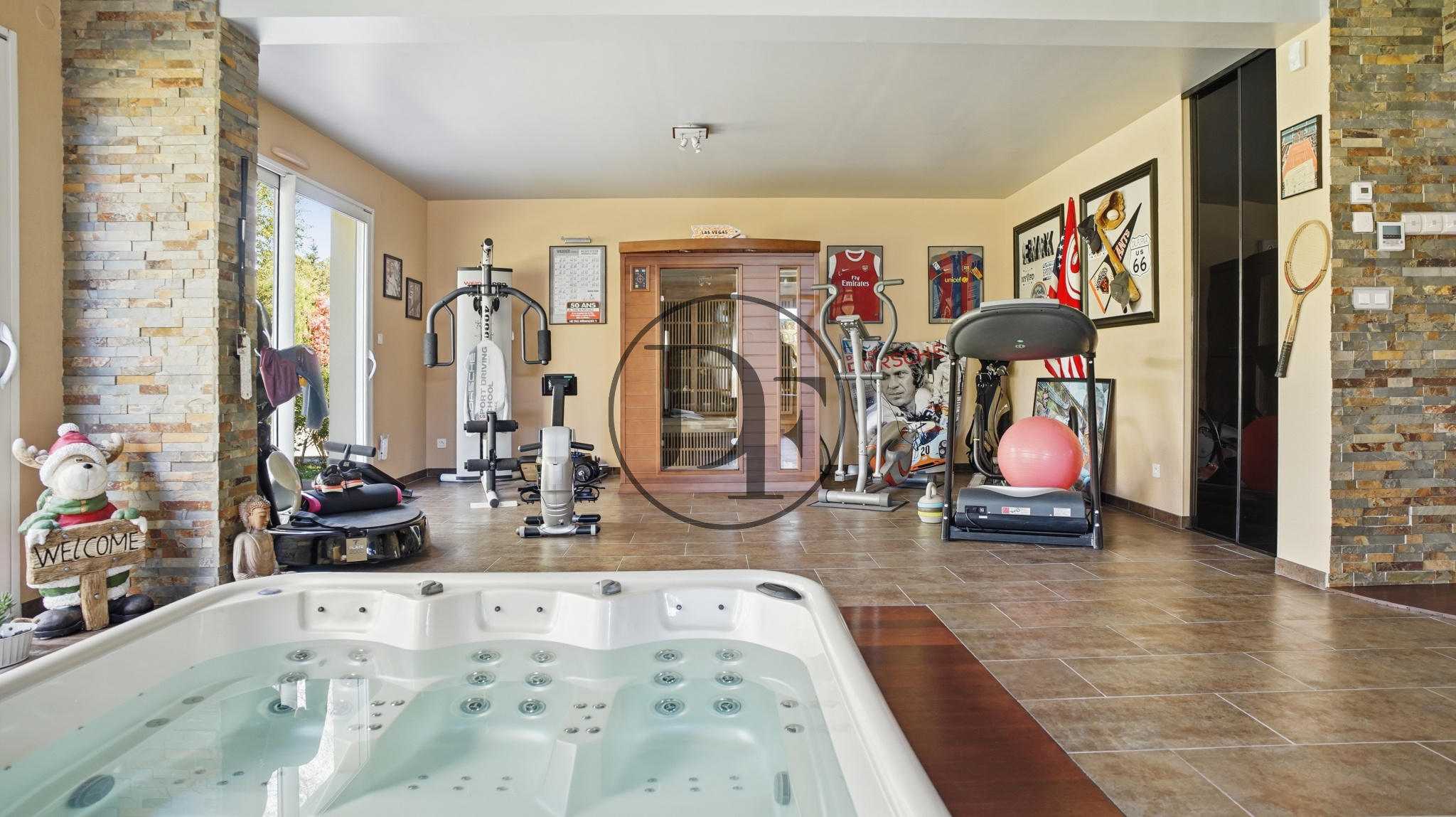 Pour parfaire ce niveau, une grande salle de sport avec espace détente, spa, salle d’eau et toilettes.
