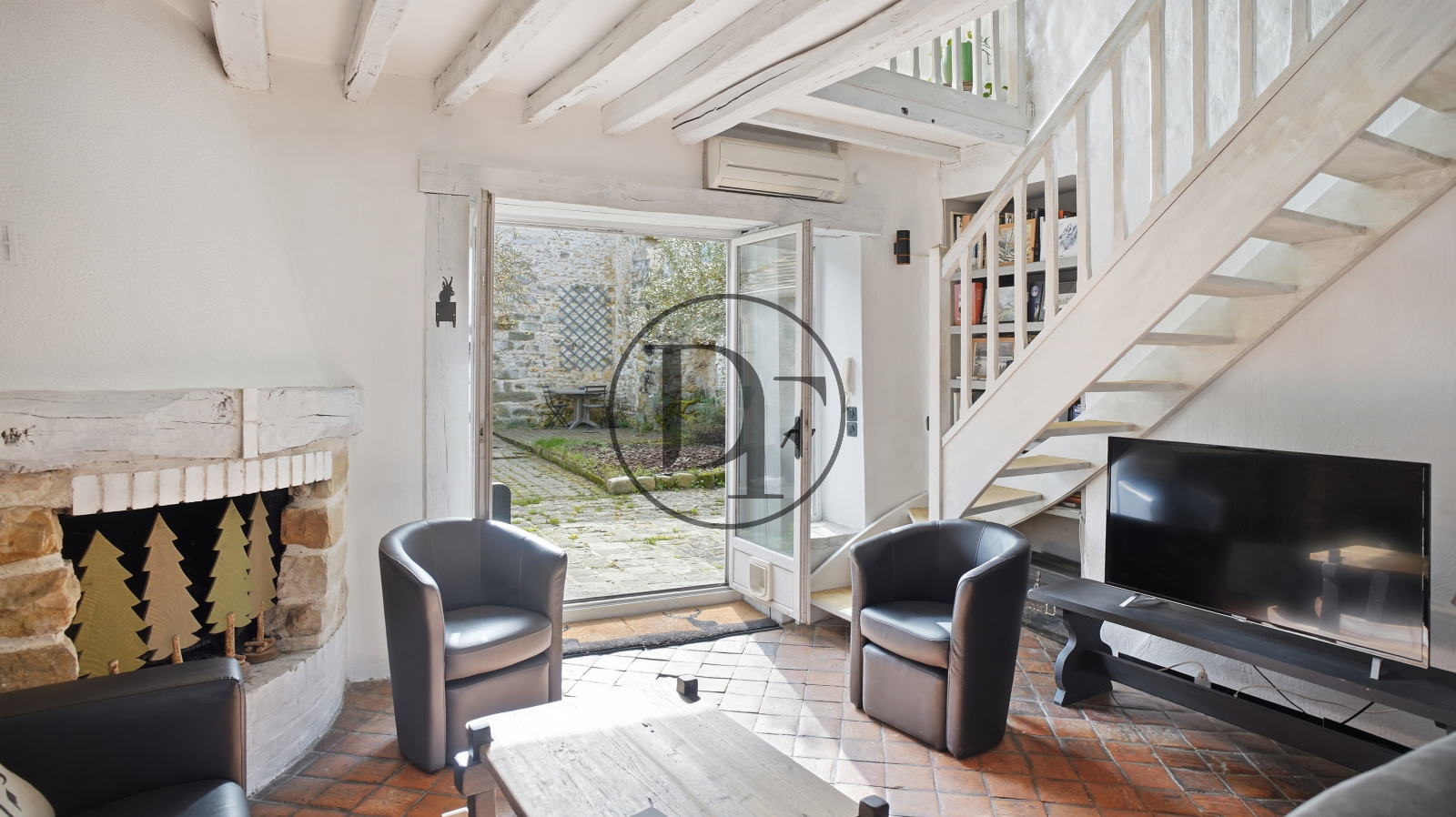 Au rez-de-chaussée, l’entrée s’ouvre directement sur un salon/séjour chaleureux agrémenté d’une cheminée, prolongé par une cuisine aménagée et entièrement équipée avec espace repas.