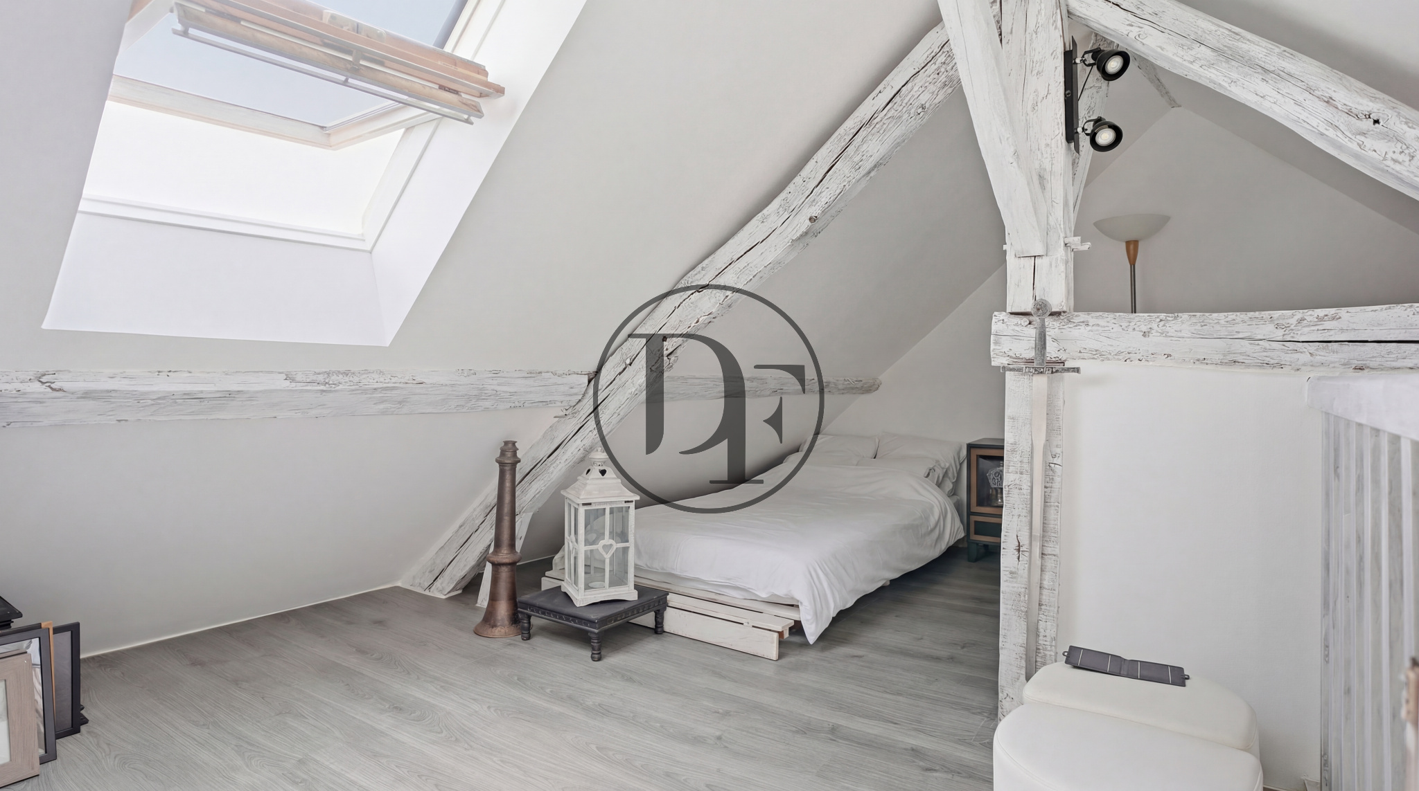 Au deuxième étage, vous découvrirez une chambre mansardée offrant une surface de 20 m² au sol.