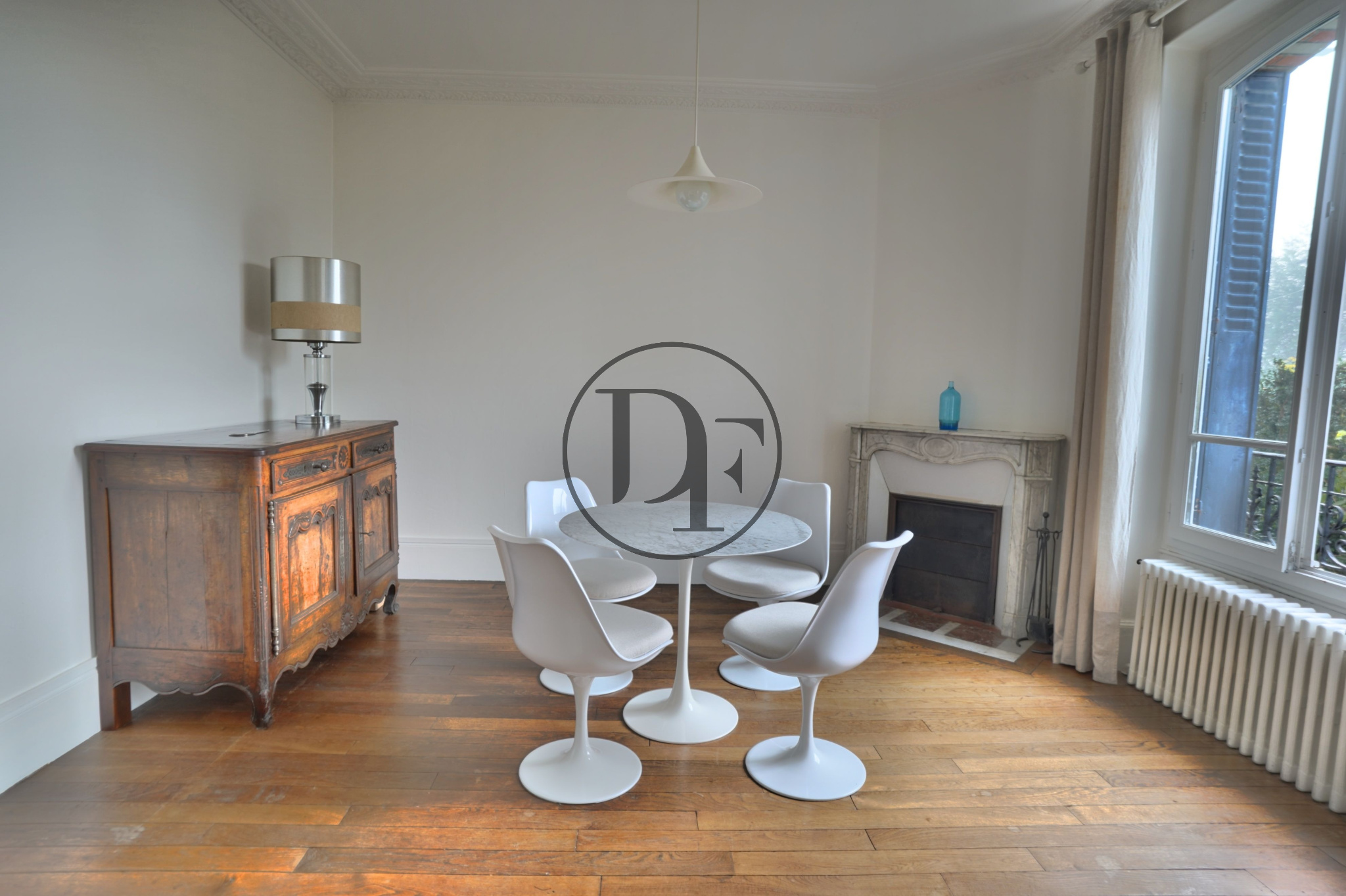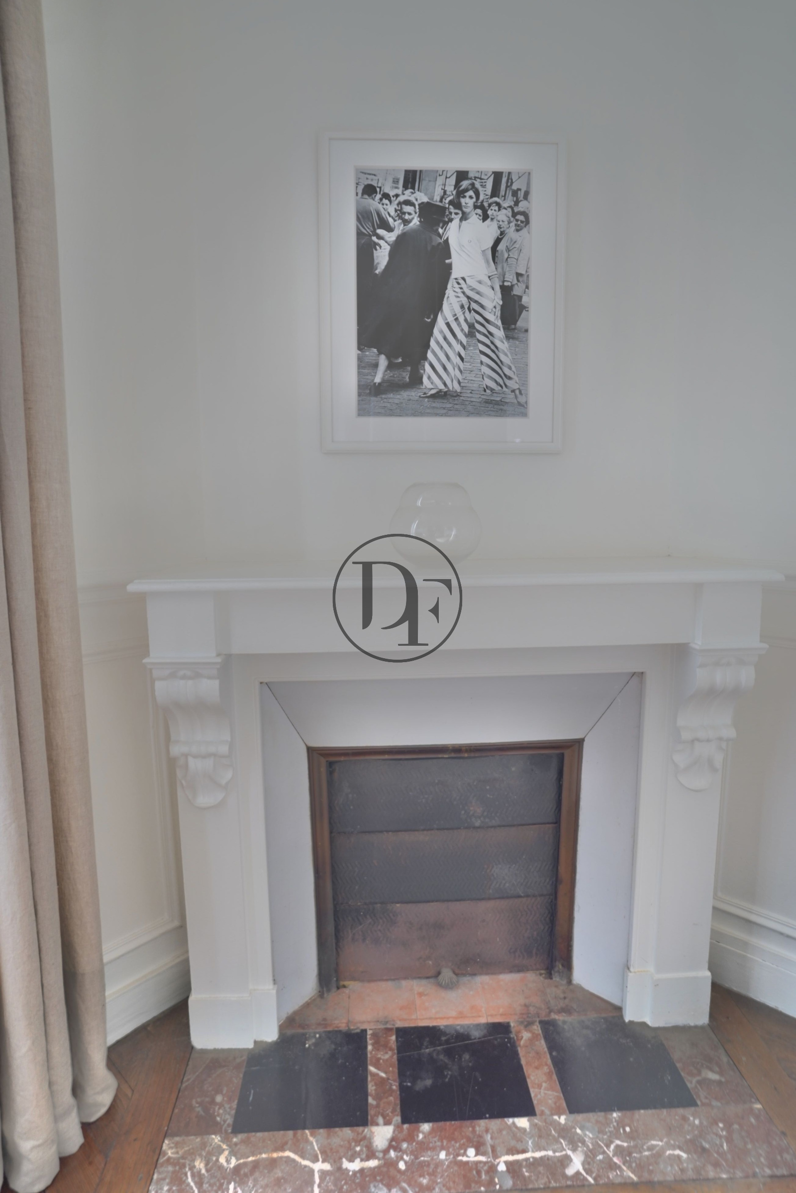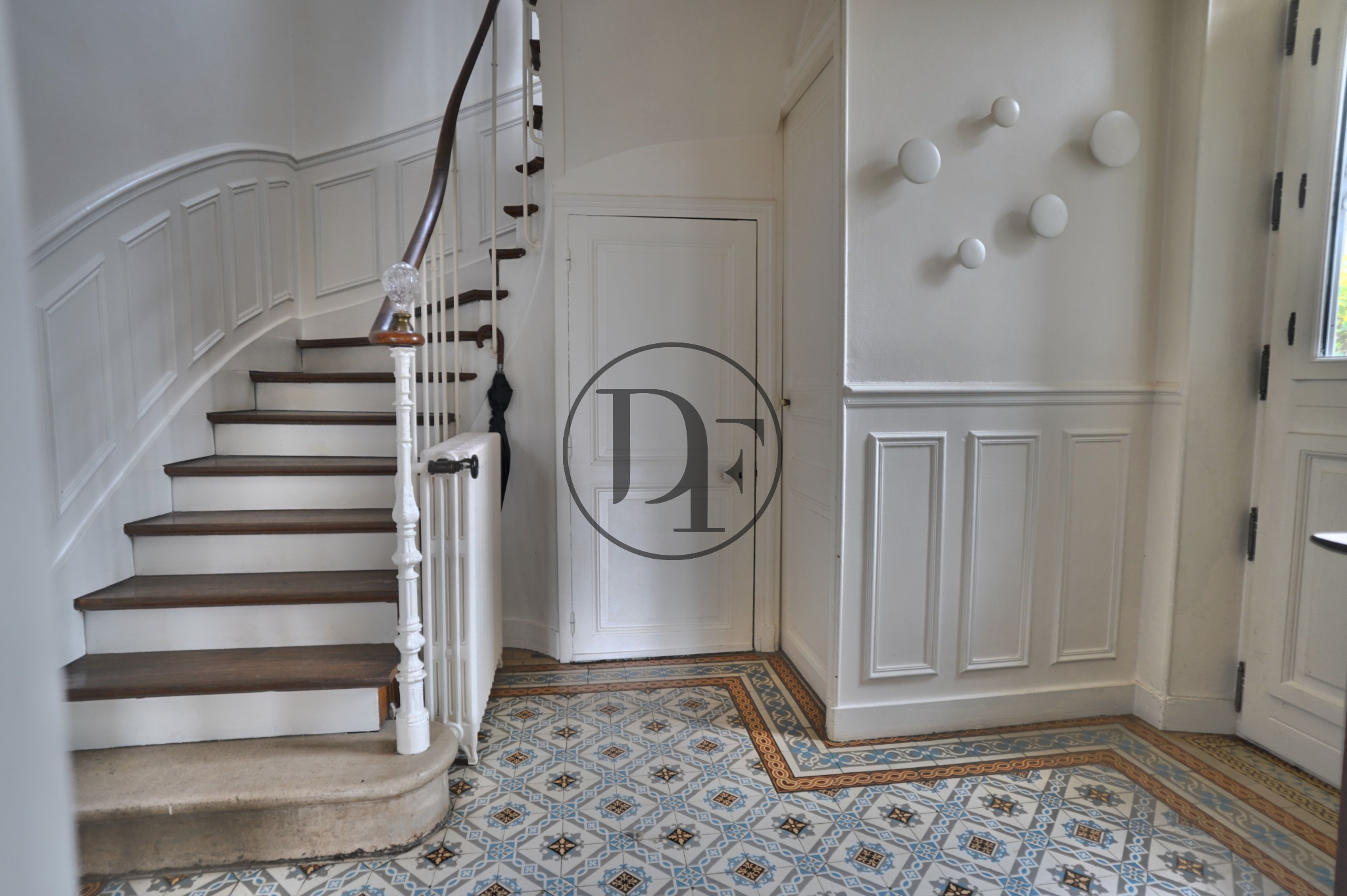 MATÉRIAUX D’ÉPOQUE CONSERVÉS : MOULURES, CARREAUX DE CIMENT, CHEMINÉES.