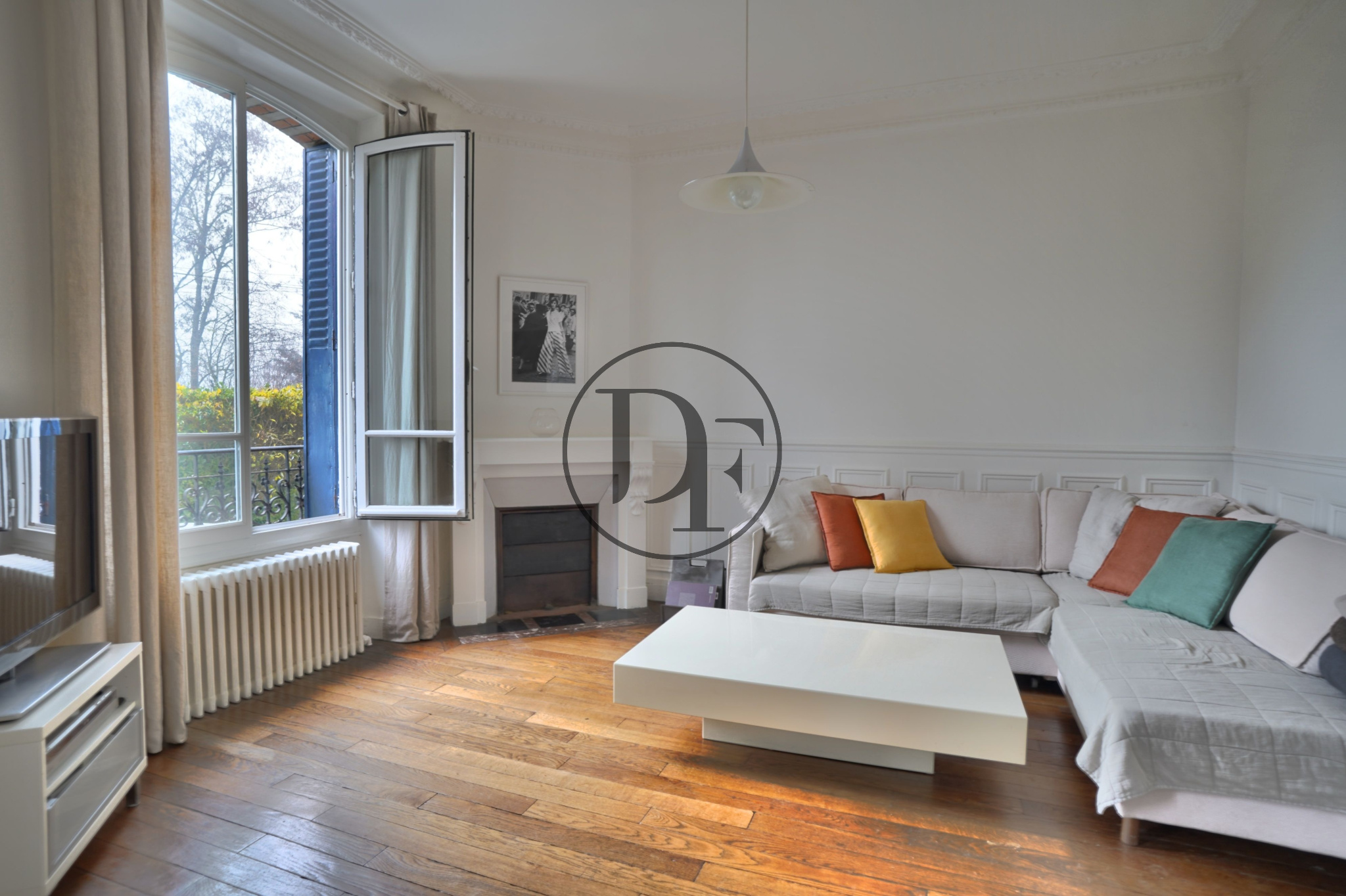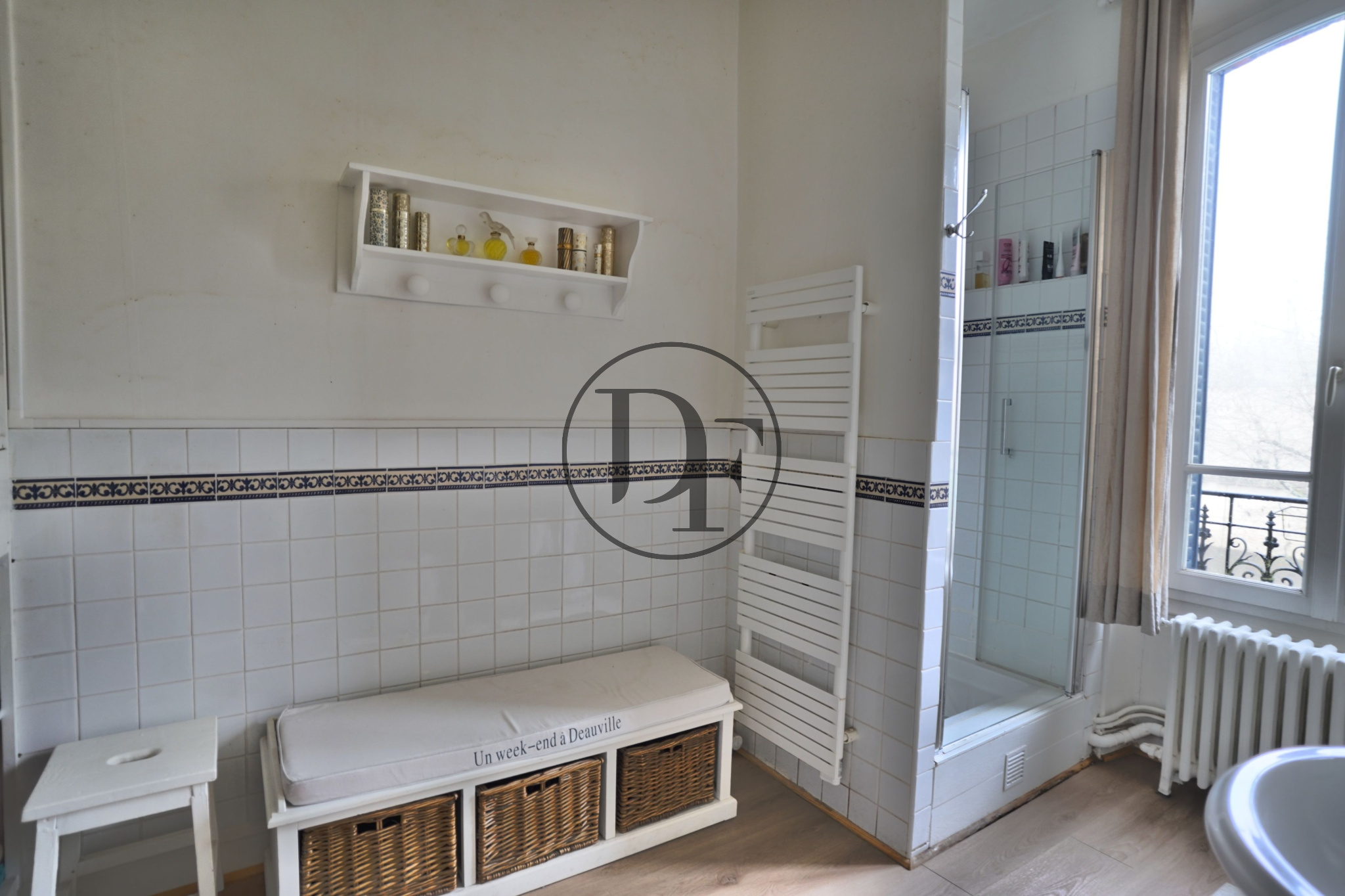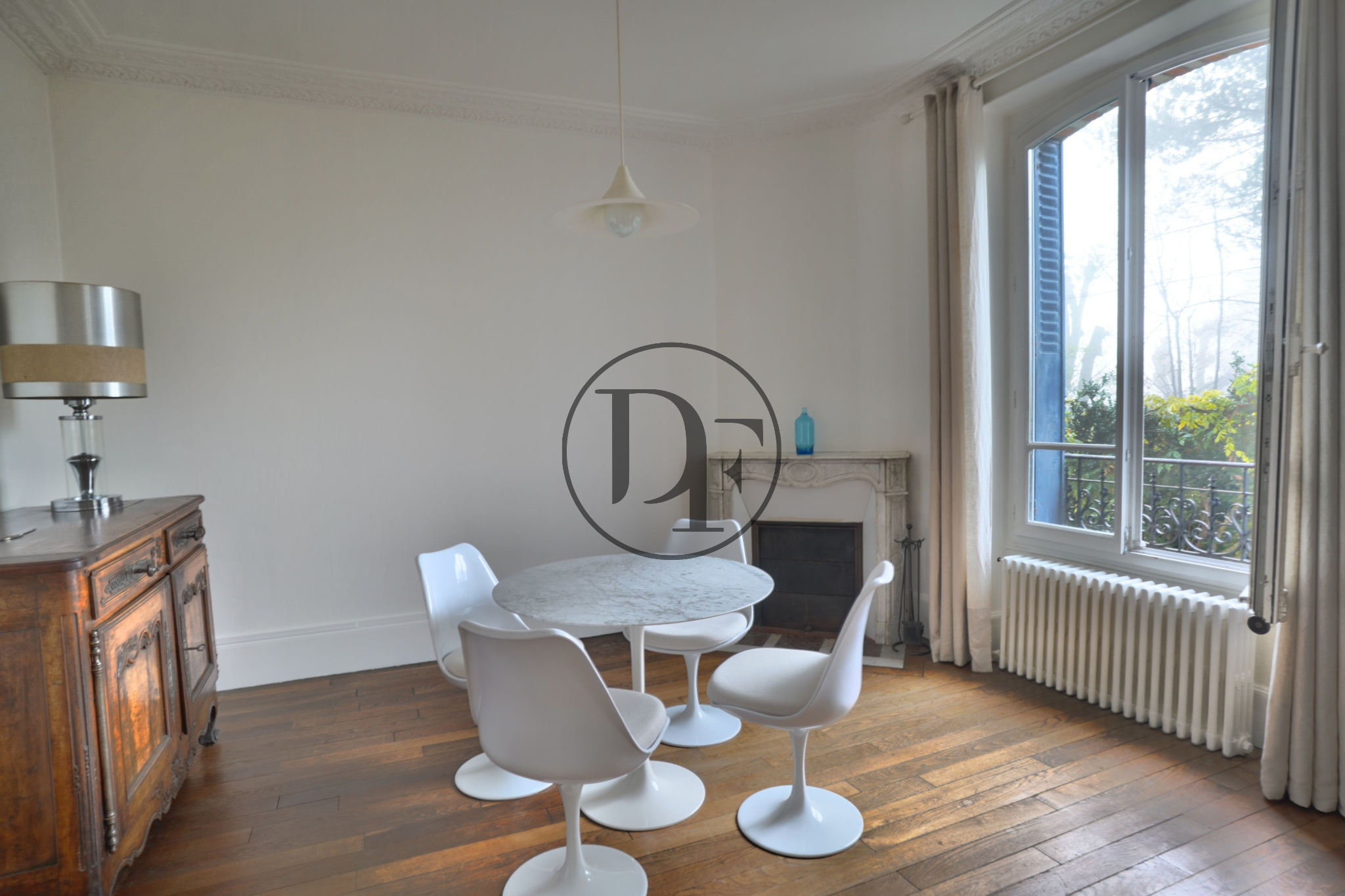 MATÉRIAUX D’ÉPOQUE CONSERVÉS : MOULURES, CARREAUX DE CIMENT, CHEMINÉES.