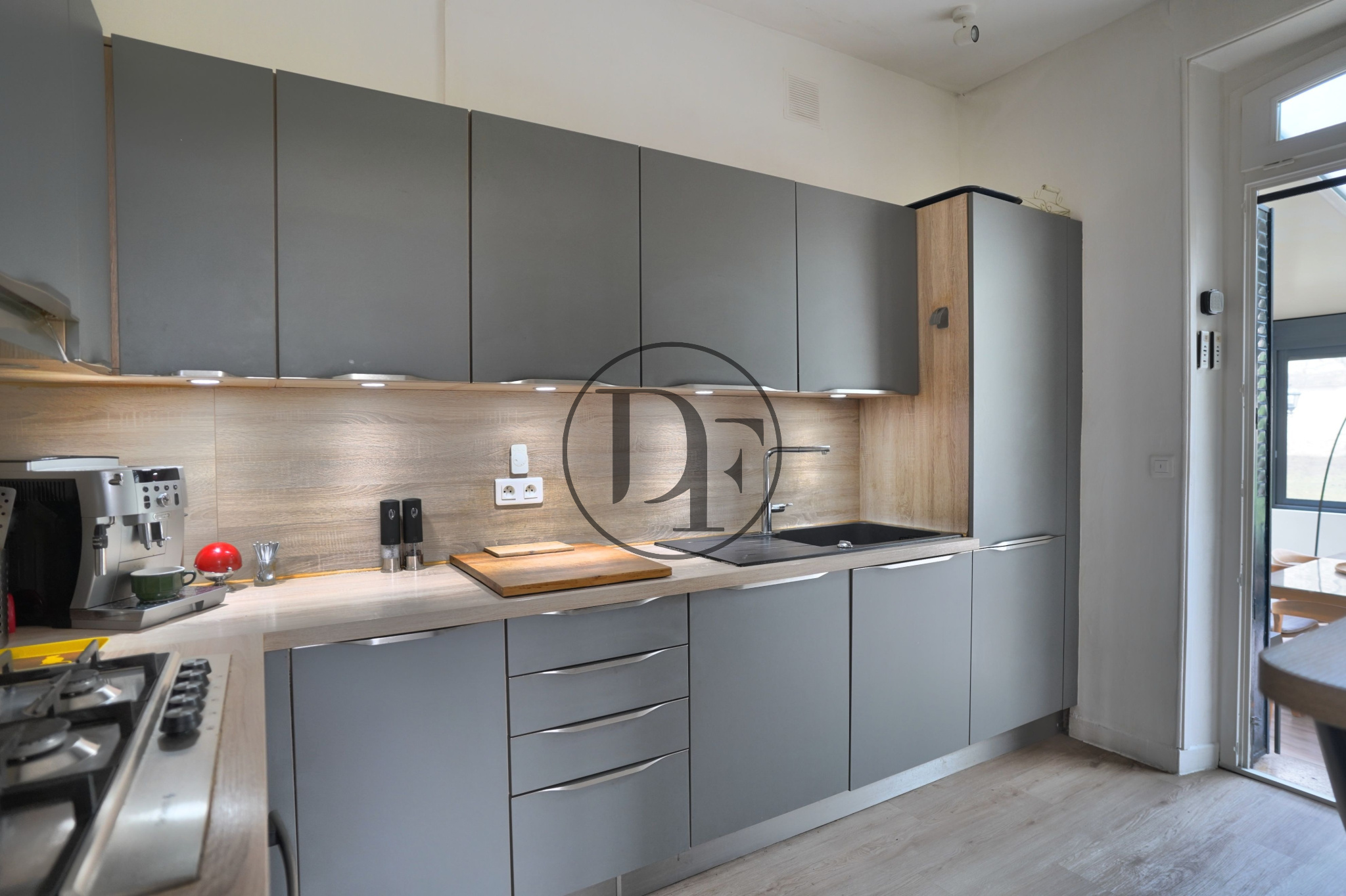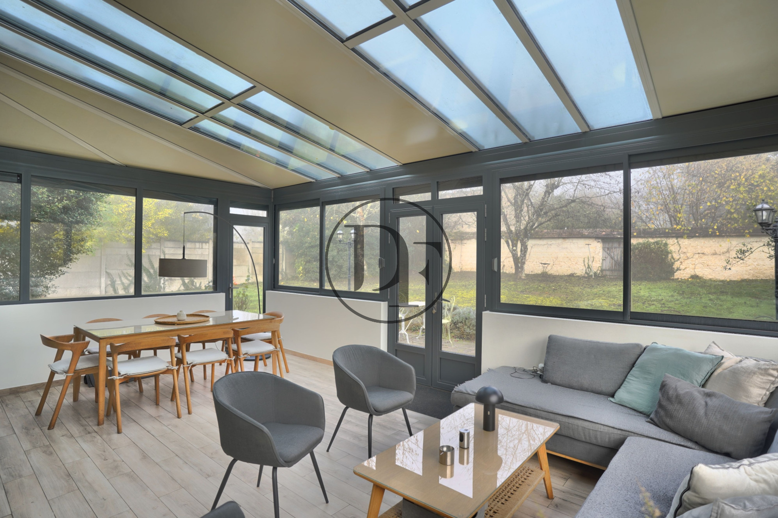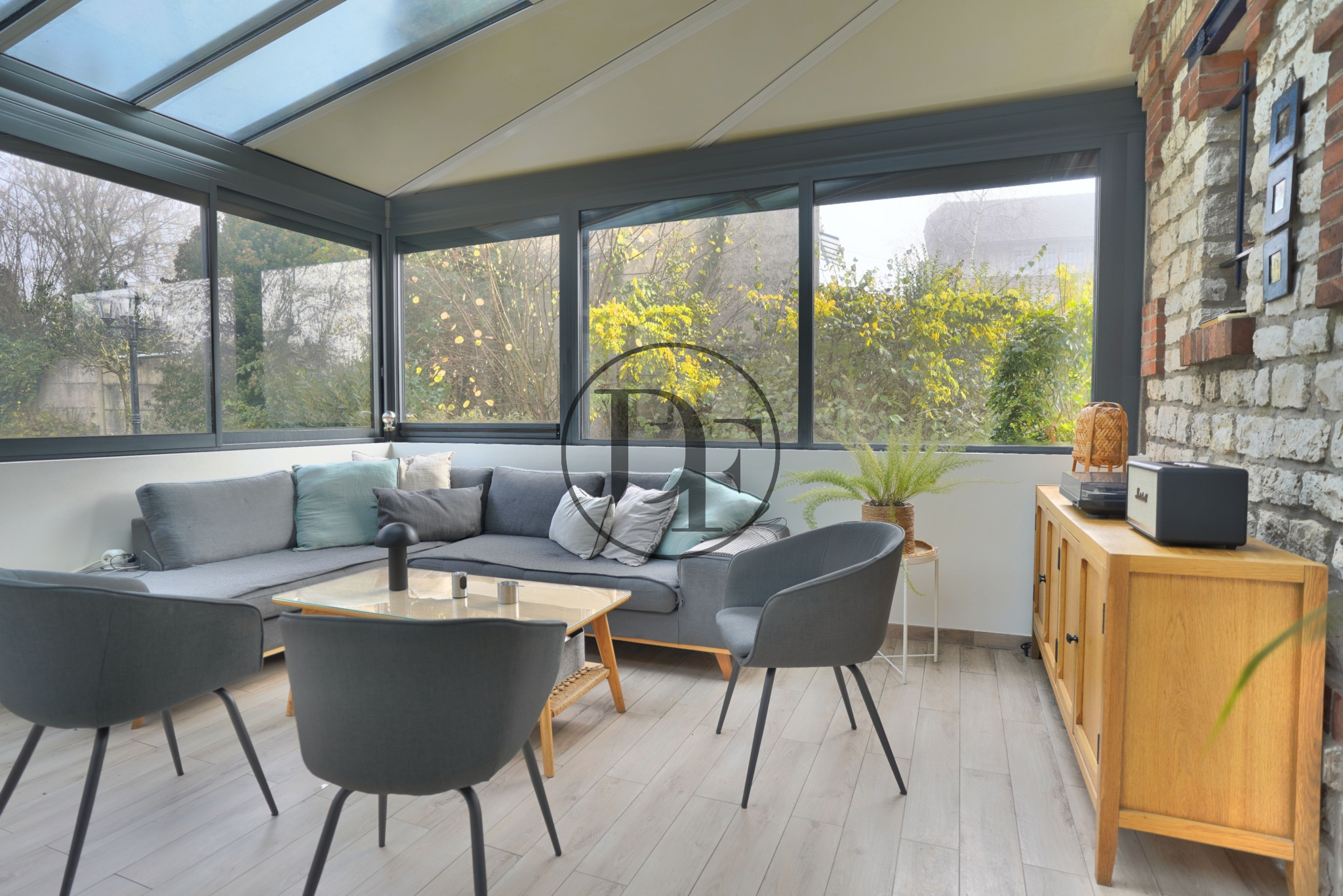 Vous serez accueilli par une entrée avec un sol en véritables carreaux ciment, un toilette indépendant. En continuité, un salon-séjour avec cheminées d’époque, parquet ancien et belle hauteur sous plafond, ainsi qu’une cuisine équipée et aménagée avec espace repas. Dans le prolongement, une véranda de 27 m² aménagée en salon-salle à manger offre un accès direct sur le jardin.