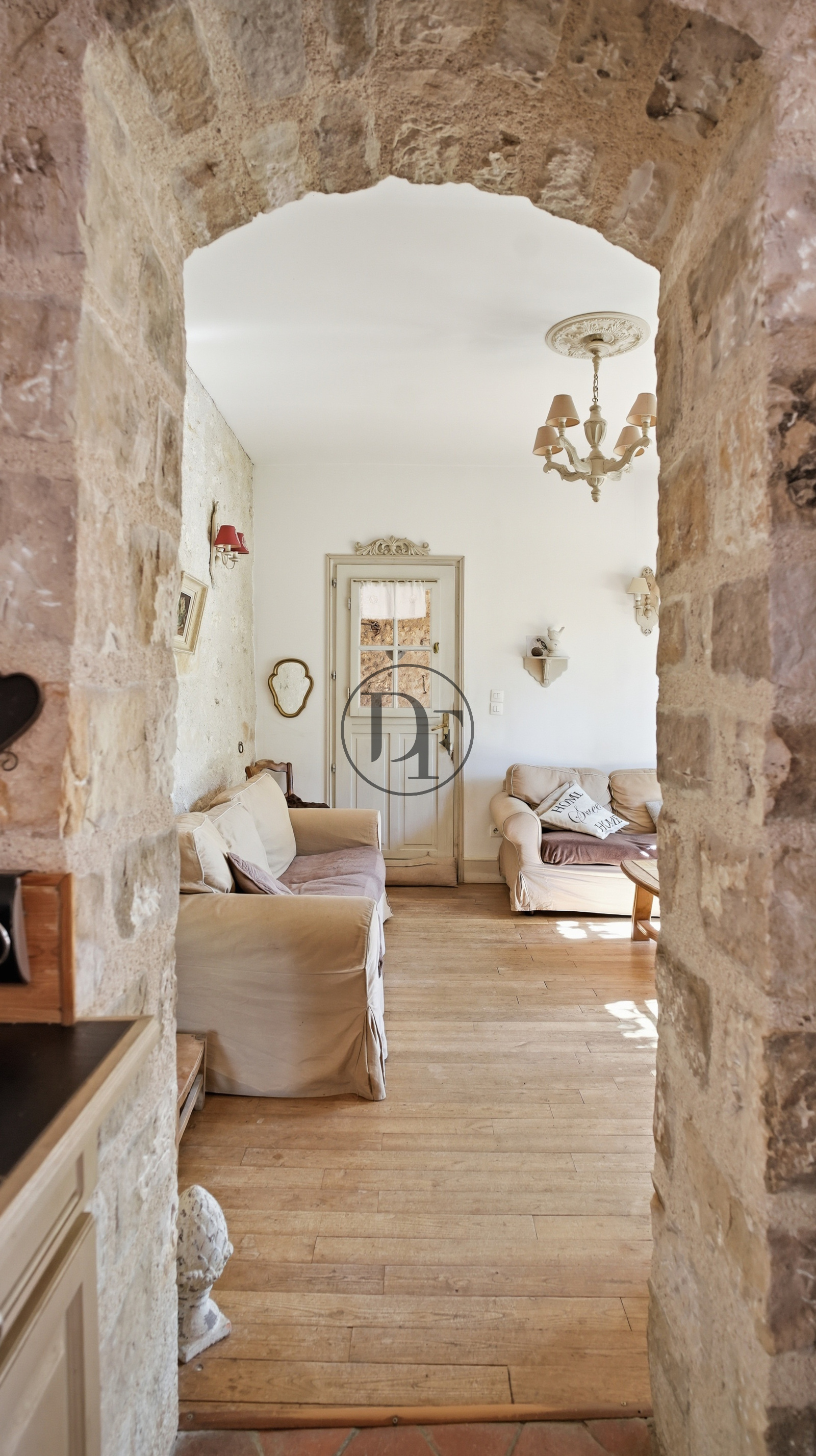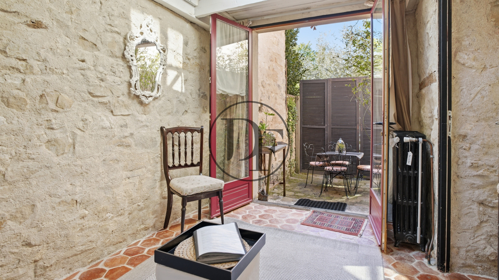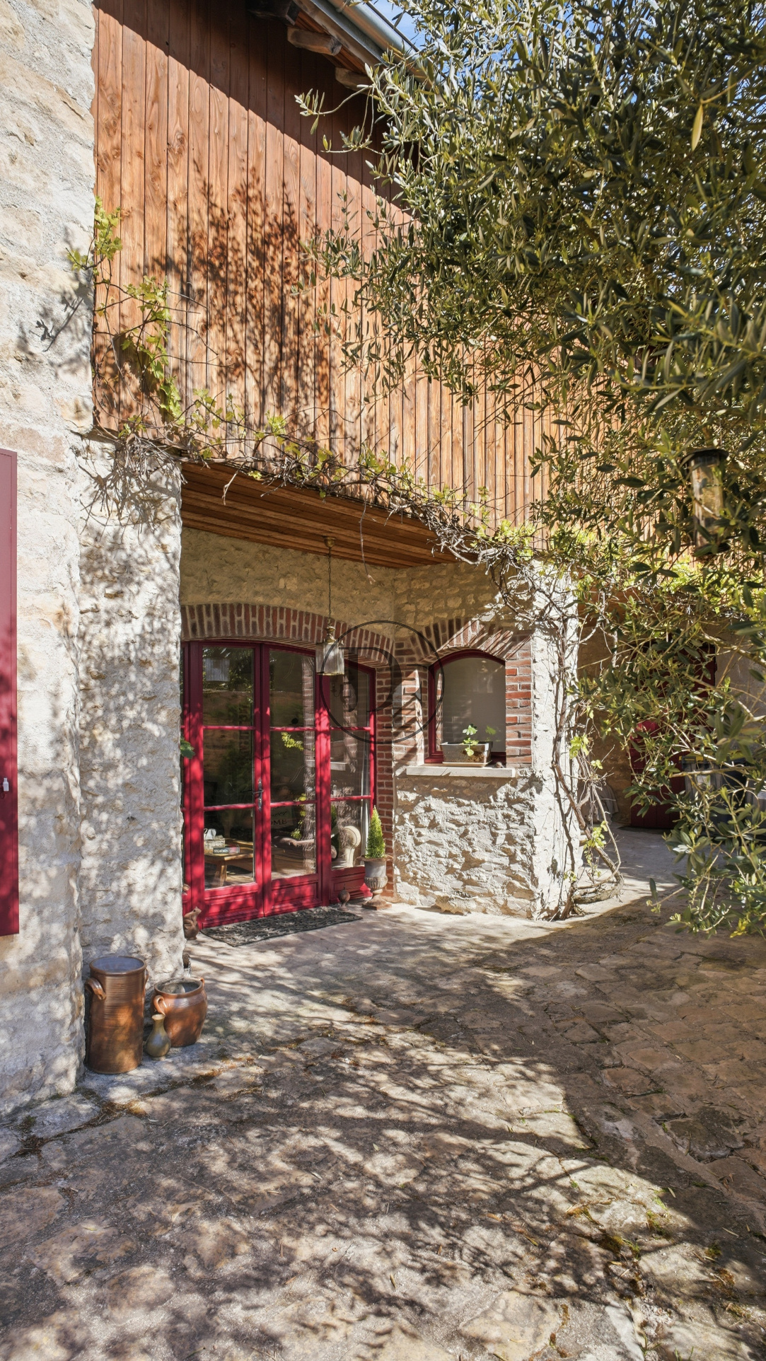 Le gîte indépendant tout en étant directement relié à la maison — un véritable atout — comprend une cuisine ainsi qu’un salon ouvert sur une charmante cour intime.