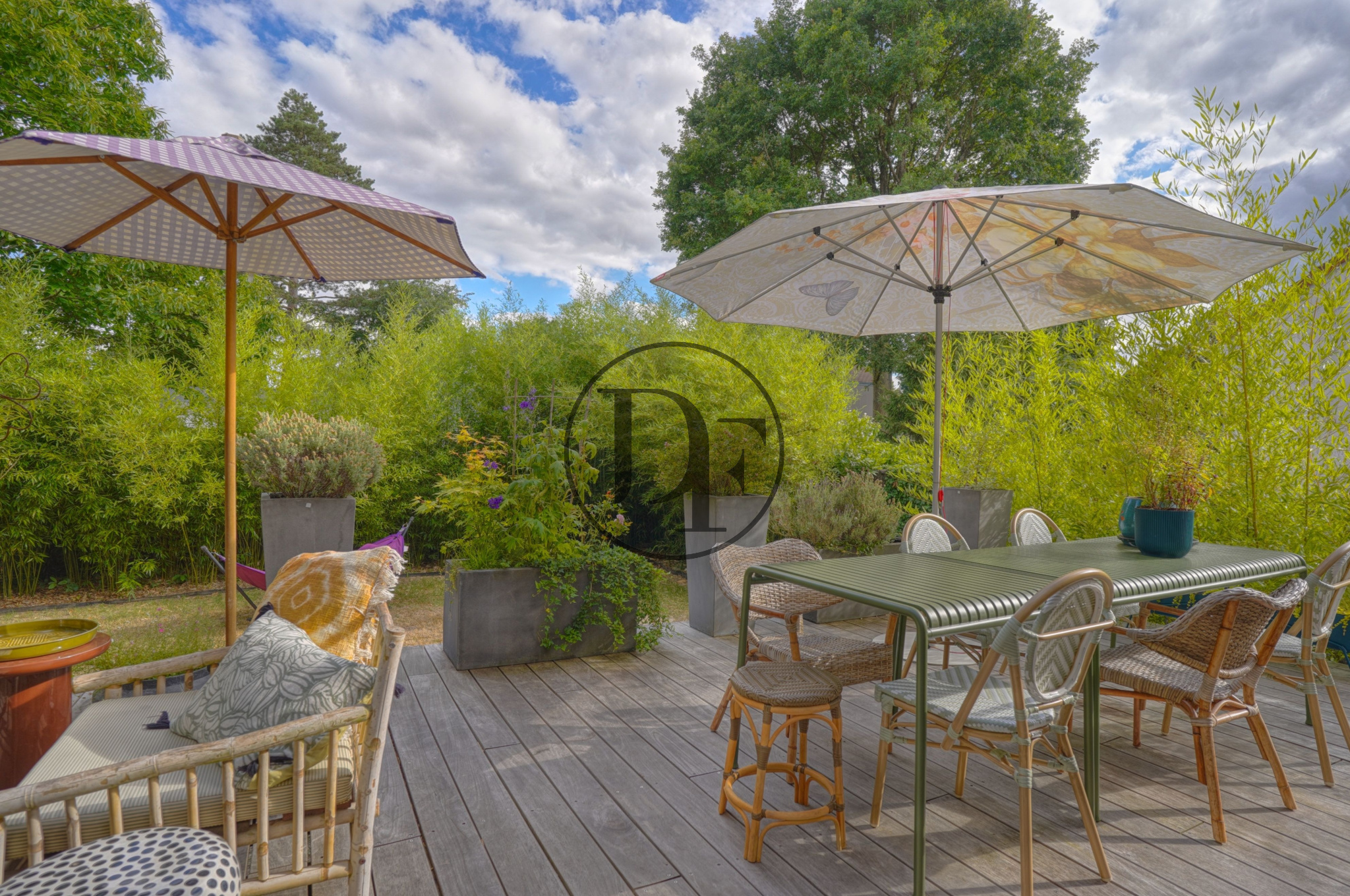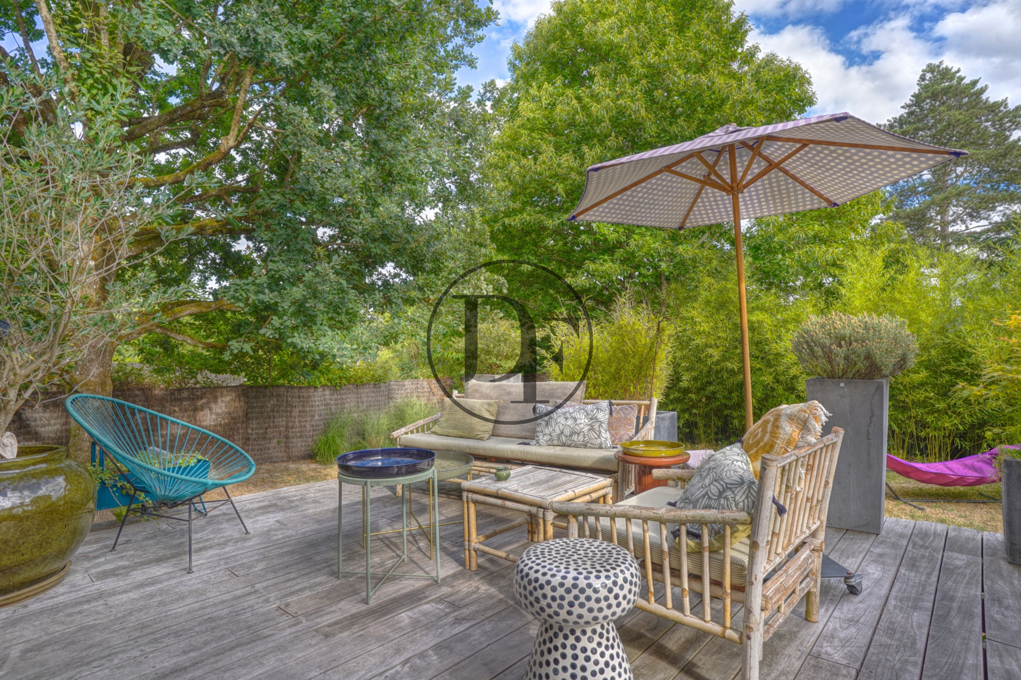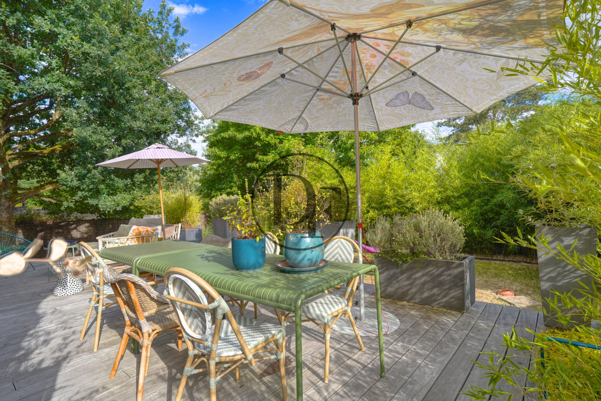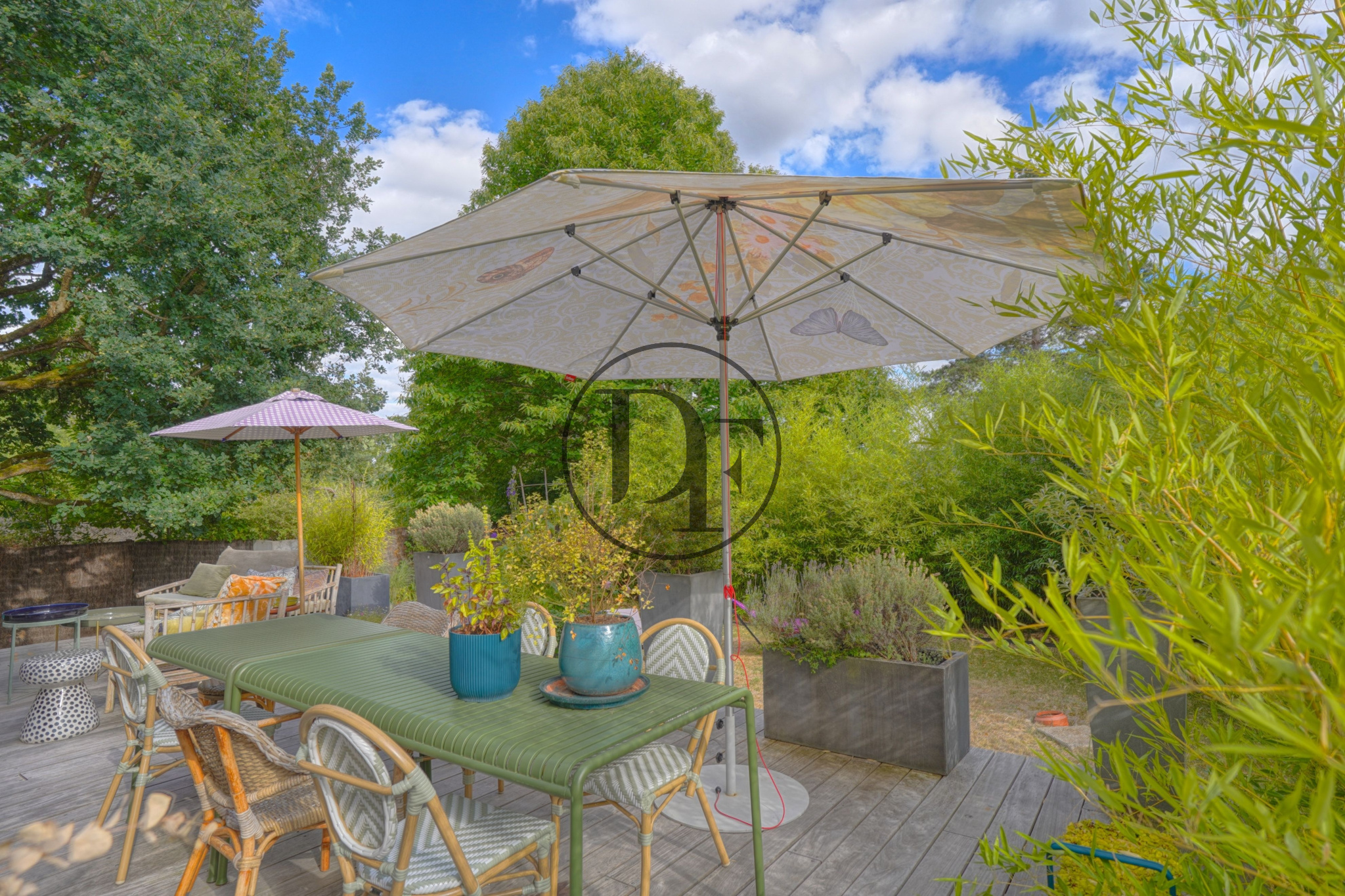 Le jardin clos et arboré se développe tout autour de la maison, il bénéficie d’une belle exposition Sud-Ouest.
