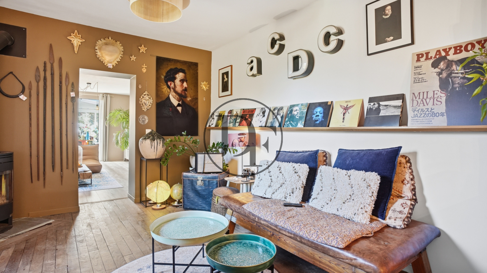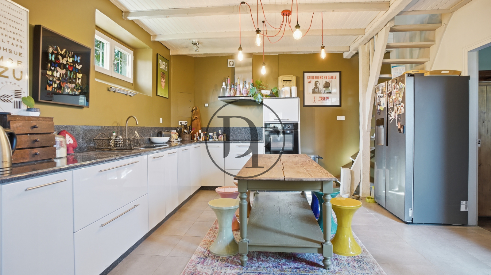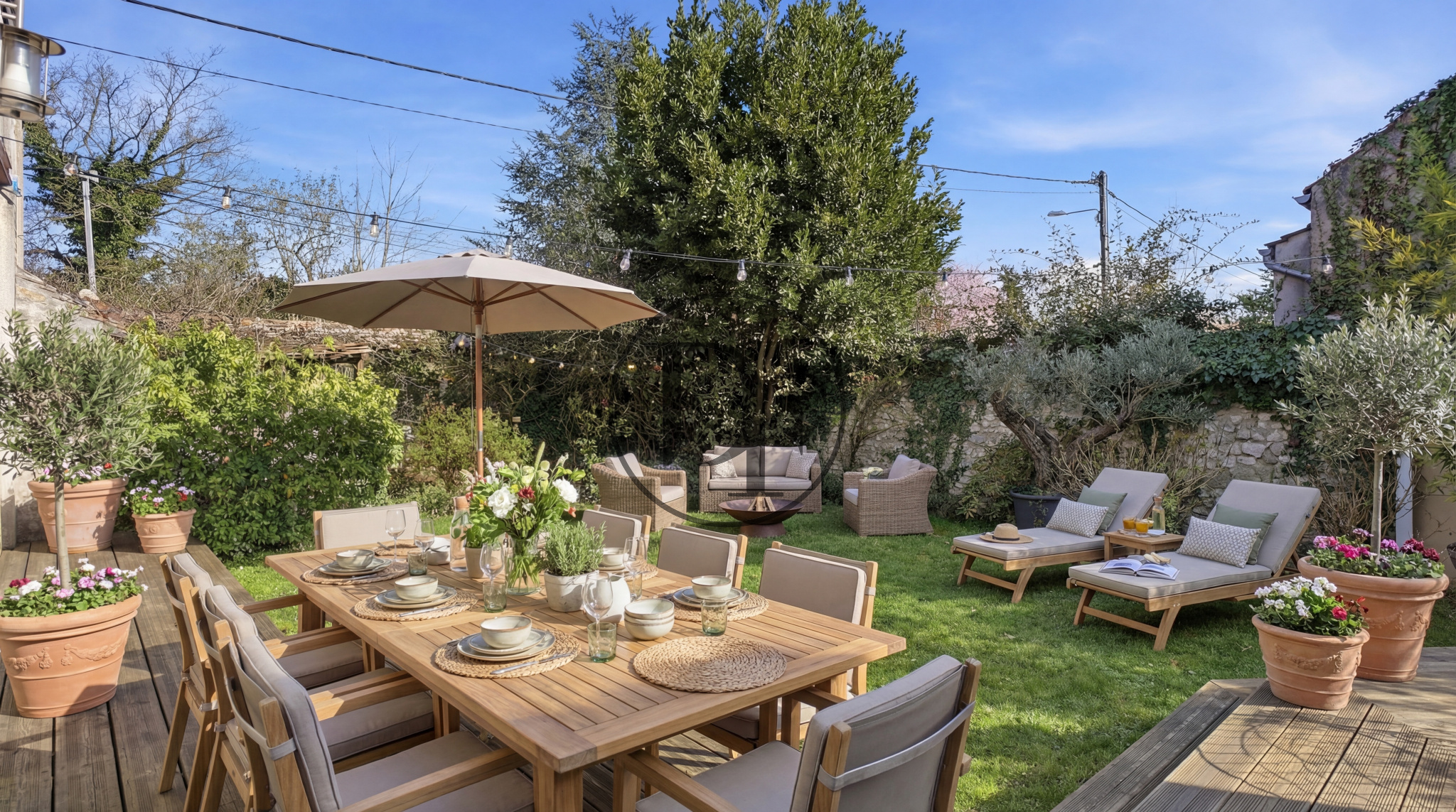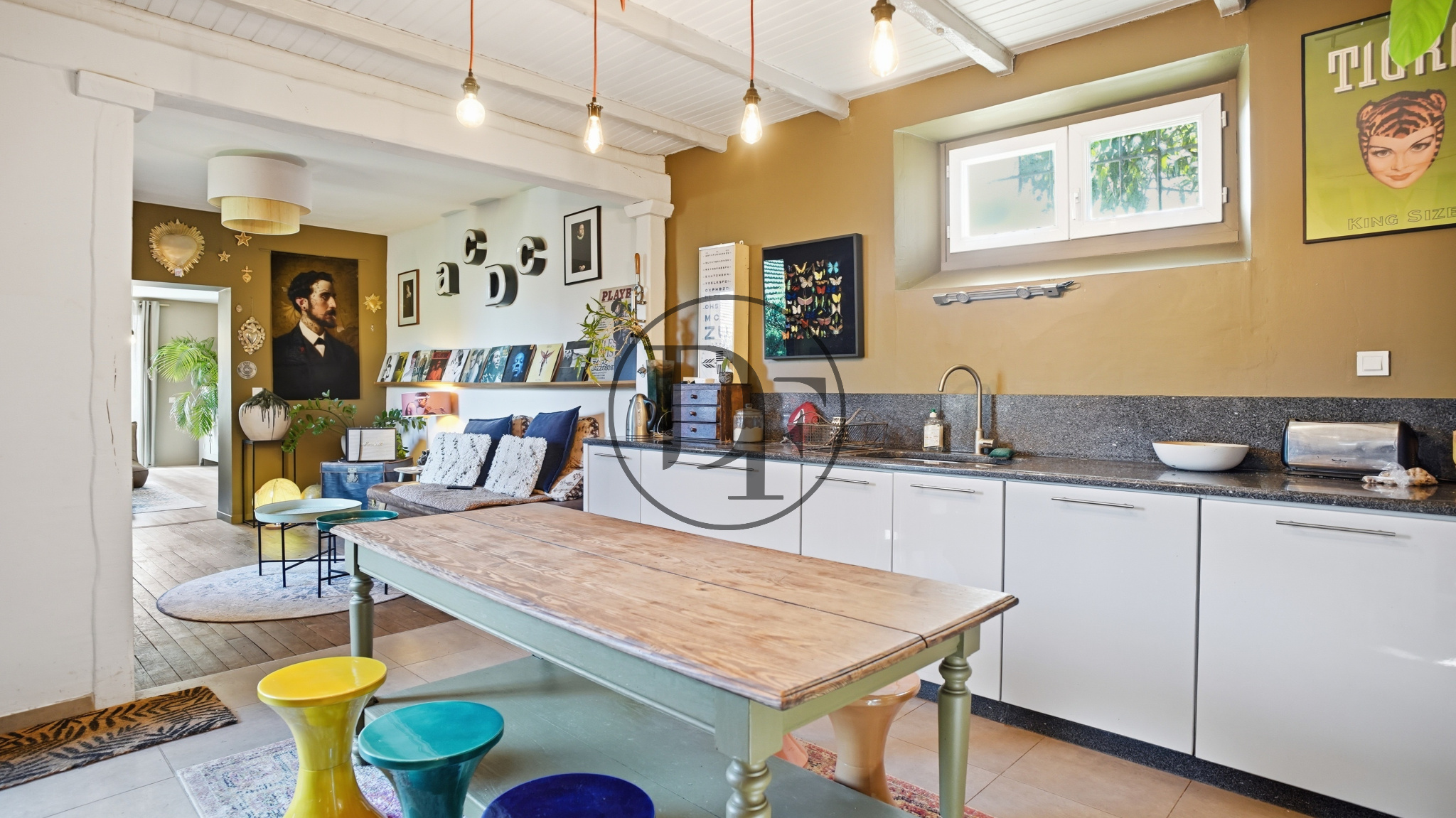 BELLE MAISON ANCIENNE EN PIERRE, LUMINEUSE ET CHATOYANTE OFFRANT 143M2 DE SURFACE HABITABLE ET 185M2 DE SURFACE UTILE, ENTIÈREMENT RÉNOVÉE AVEC GOUT, ÉLÉGANCE ET CONFORT. HABILLÉE D'UN BARDAGE BOIS ET OUVERTE SUR UN DOUBLE JARDIN PAYSAGER ET ARBORÉ DE 394M2, ELLE OFFRE UN CADRE DE VIE INTIME ET APAISANT.